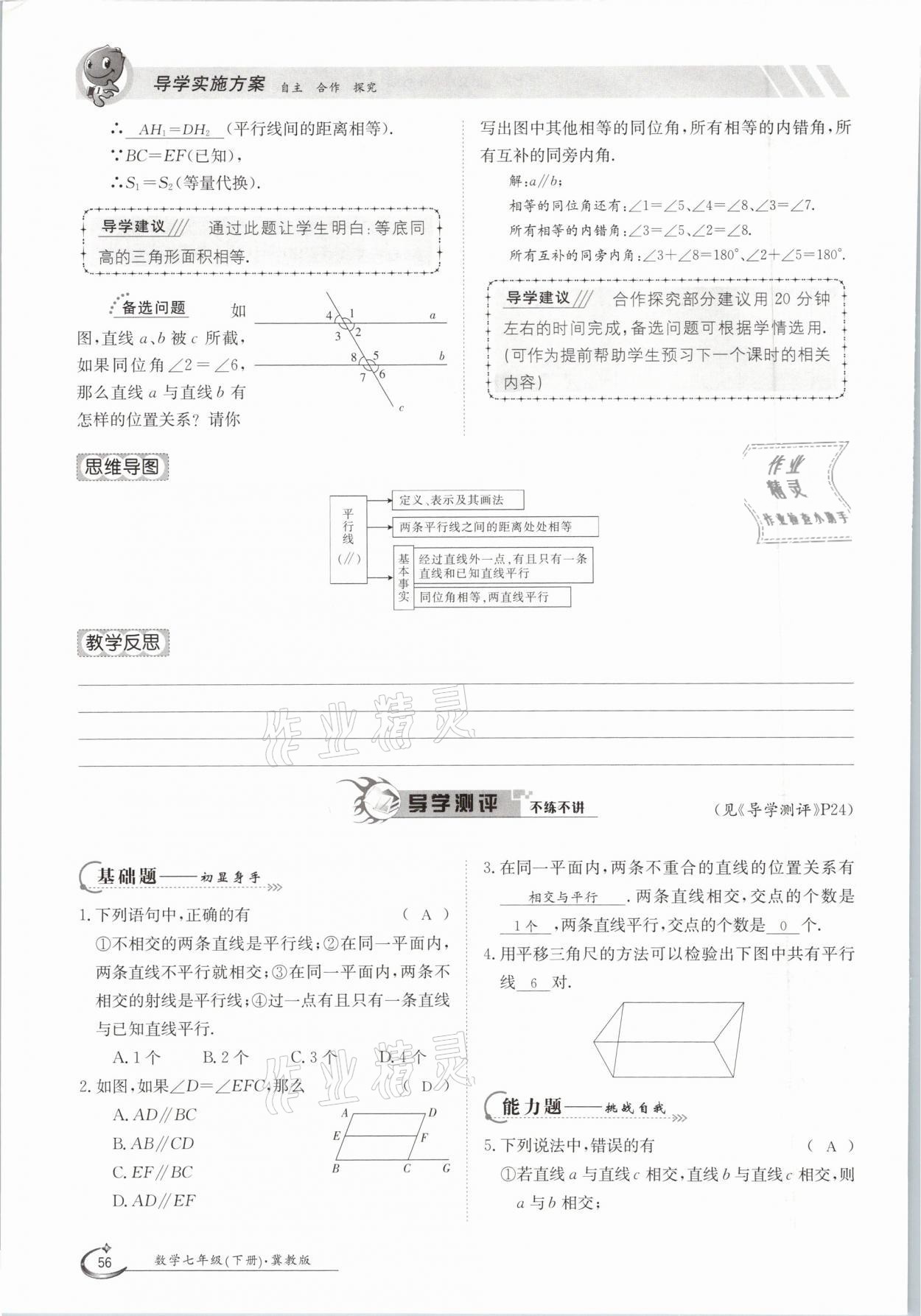 2021年三段六步导学测评七年级数学下册冀教版