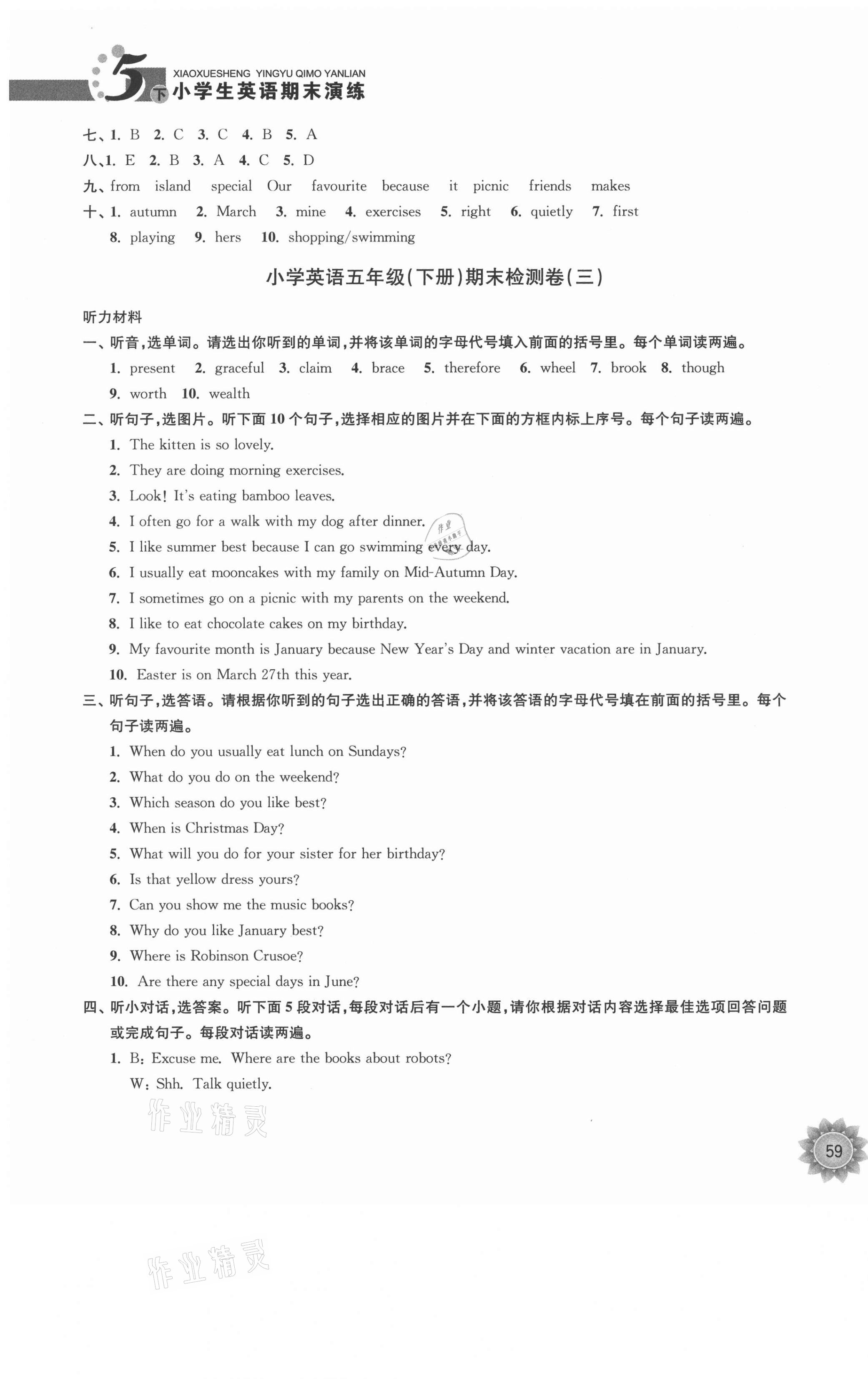 注:目前有些书本章节名称可能整理的还不是很完善,但都是按照顺序排列的,请同学们按照顺序仔细查找。练习册 2021年小学生期末演练五年级英语下册人教版 答案主要是用来给同学们做完题方便对答案用的,请勿直接抄袭。