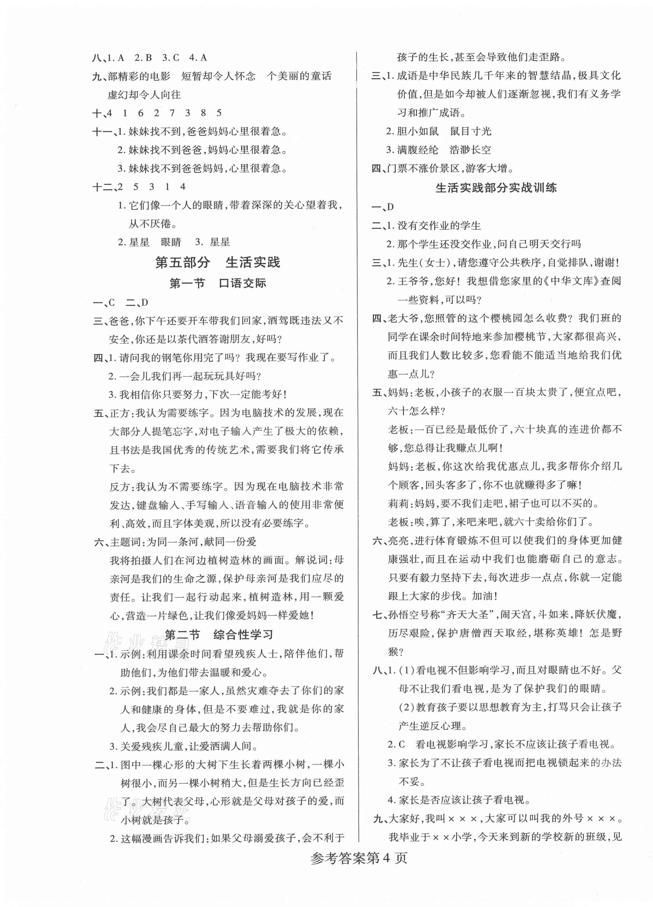 注:目前有些书本章节名称可能整理的还不是很完善,但都是按照顺序排列的,请同学们按照顺序仔细查找。练习册 2021年培优总复习语文 答案主要是用来给同学们做完题方便对答案用的,请勿直接抄袭。