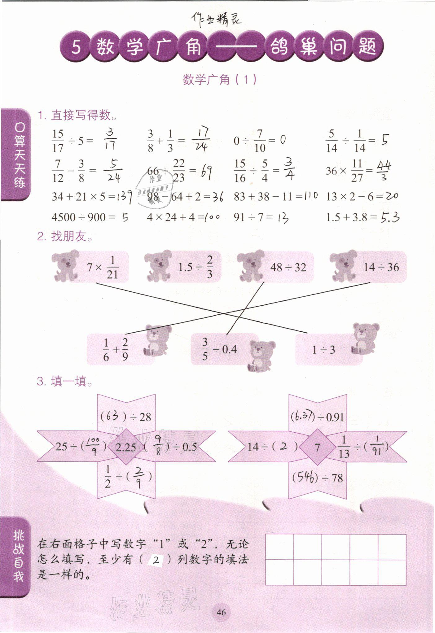 注:目前有些书本章节名称可能整理的还不是很完善,但都是按照顺序排列的,请同学们按照顺序仔细查找。练习册 2021年口算小状元六年级数学下册人教版人民教育出版社 答案主要是用来给同学们做完题方便对答案用的,请勿直接抄袭。