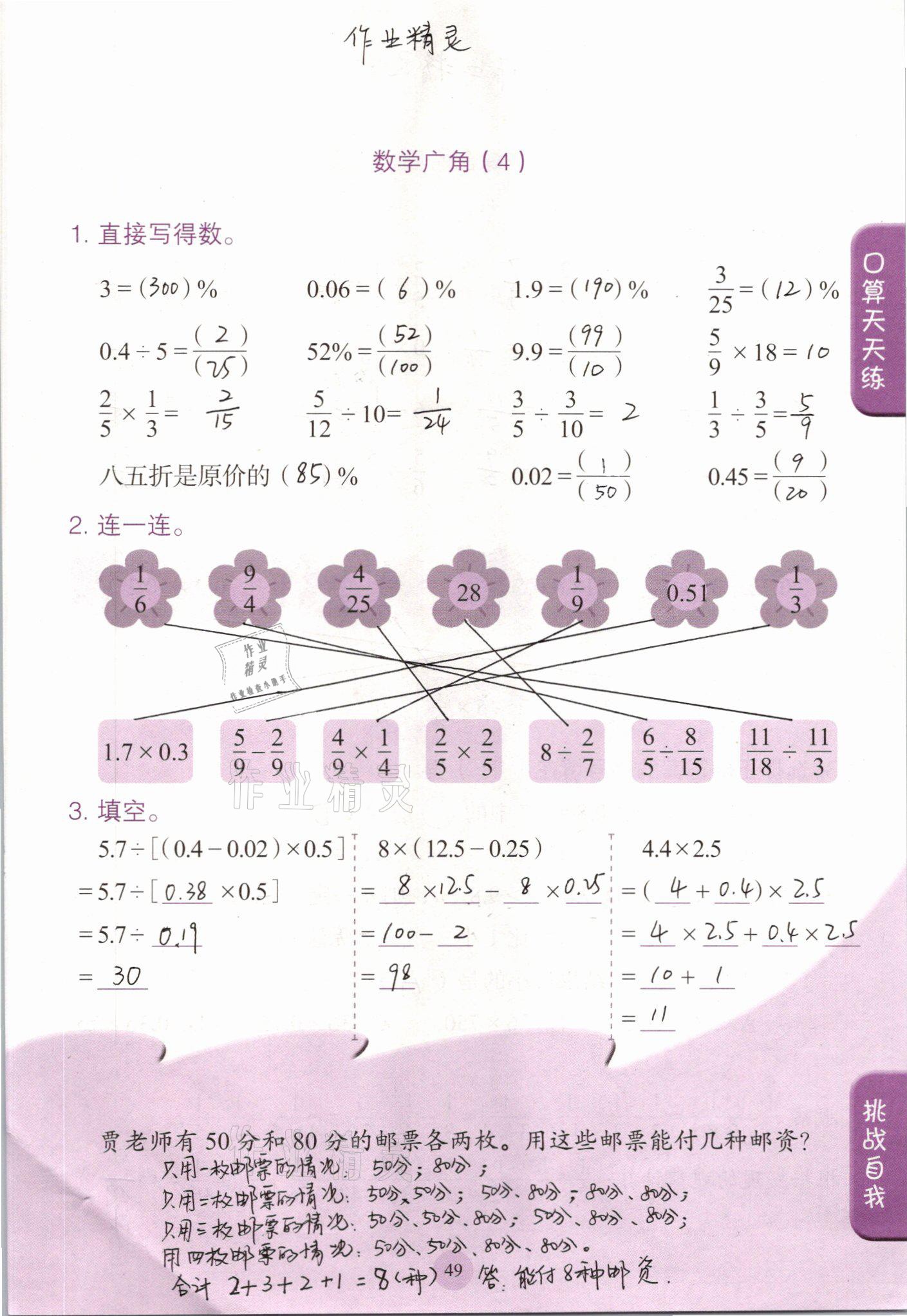 注:目前有些书本章节名称可能整理的还不是很完善,但都是按照顺序排列的,请同学们按照顺序仔细查找。练习册 2021年口算小状元六年级数学下册人教版人民教育出版社 答案主要是用来给同学们做完题方便对答案用的,请勿直接抄袭。
