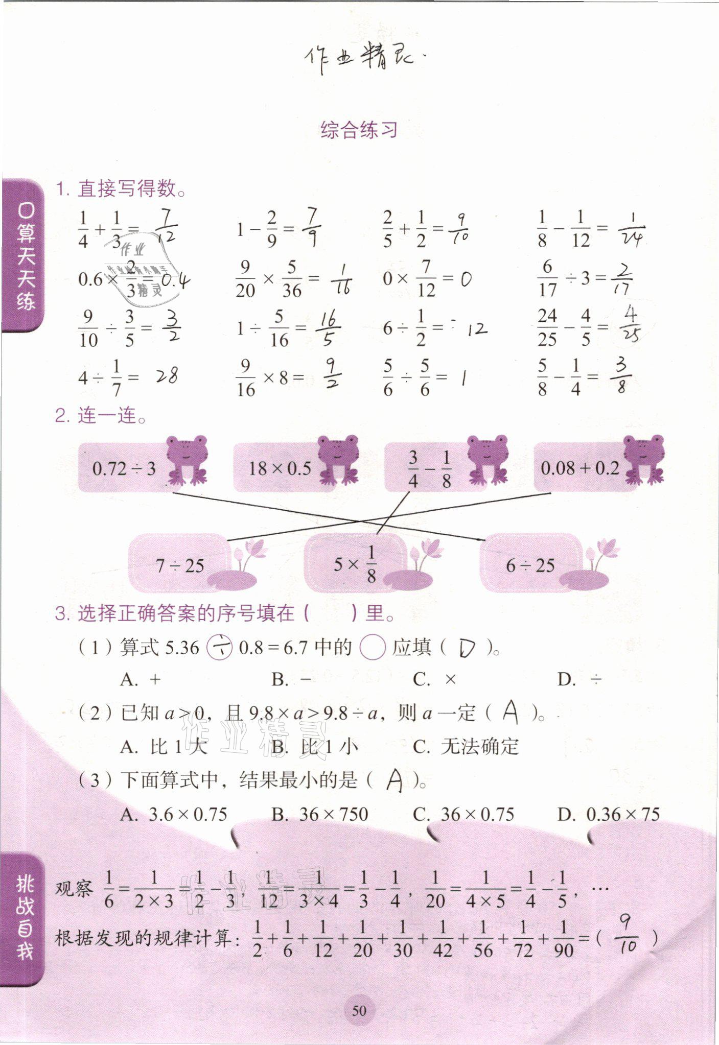 注:目前有些书本章节名称可能整理的还不是很完善,但都是按照顺序排列的,请同学们按照顺序仔细查找。练习册 2021年口算小状元六年级数学下册人教版人民教育出版社 答案主要是用来给同学们做完题方便对答案用的,请勿直接抄袭。