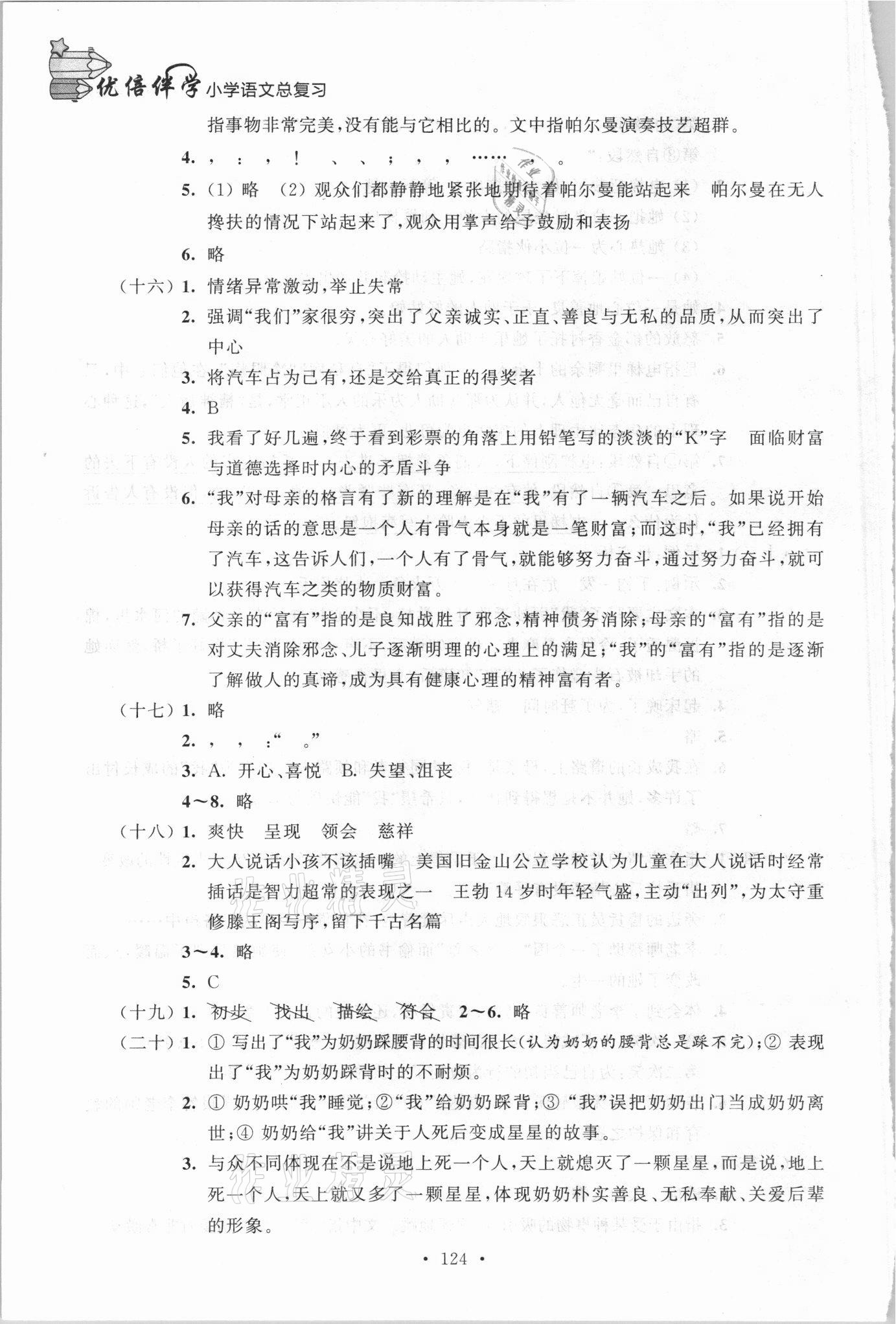 注:目前有些书本章节名称可能整理的还不是很完善,但都是按照顺序排列的,请同学们按照顺序仔细查找。练习册 2021年优倍伴学小学语文总复习 答案主要是用来给同学们做完题方便对答案用的,请勿直接抄袭。