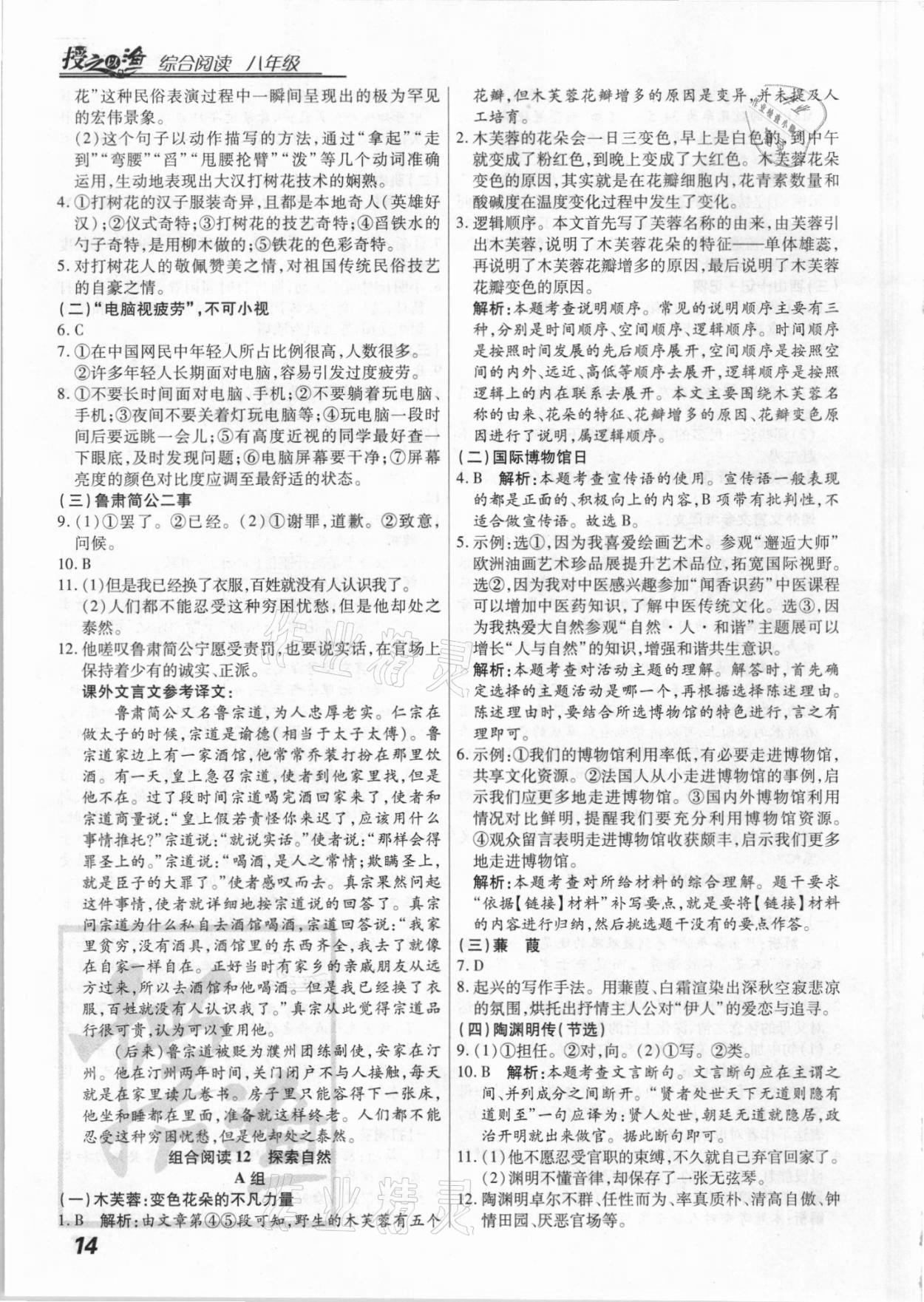 注:目前有些书本章节名称可能整理的还不是很完善,但都是按照顺序排列的,请同学们按照顺序仔细查找。练习册 2021年授之以渔综合阅读八年级人教版福建专版 答案主要是用来给同学们做完题方便对答案用的,请勿直接抄袭。