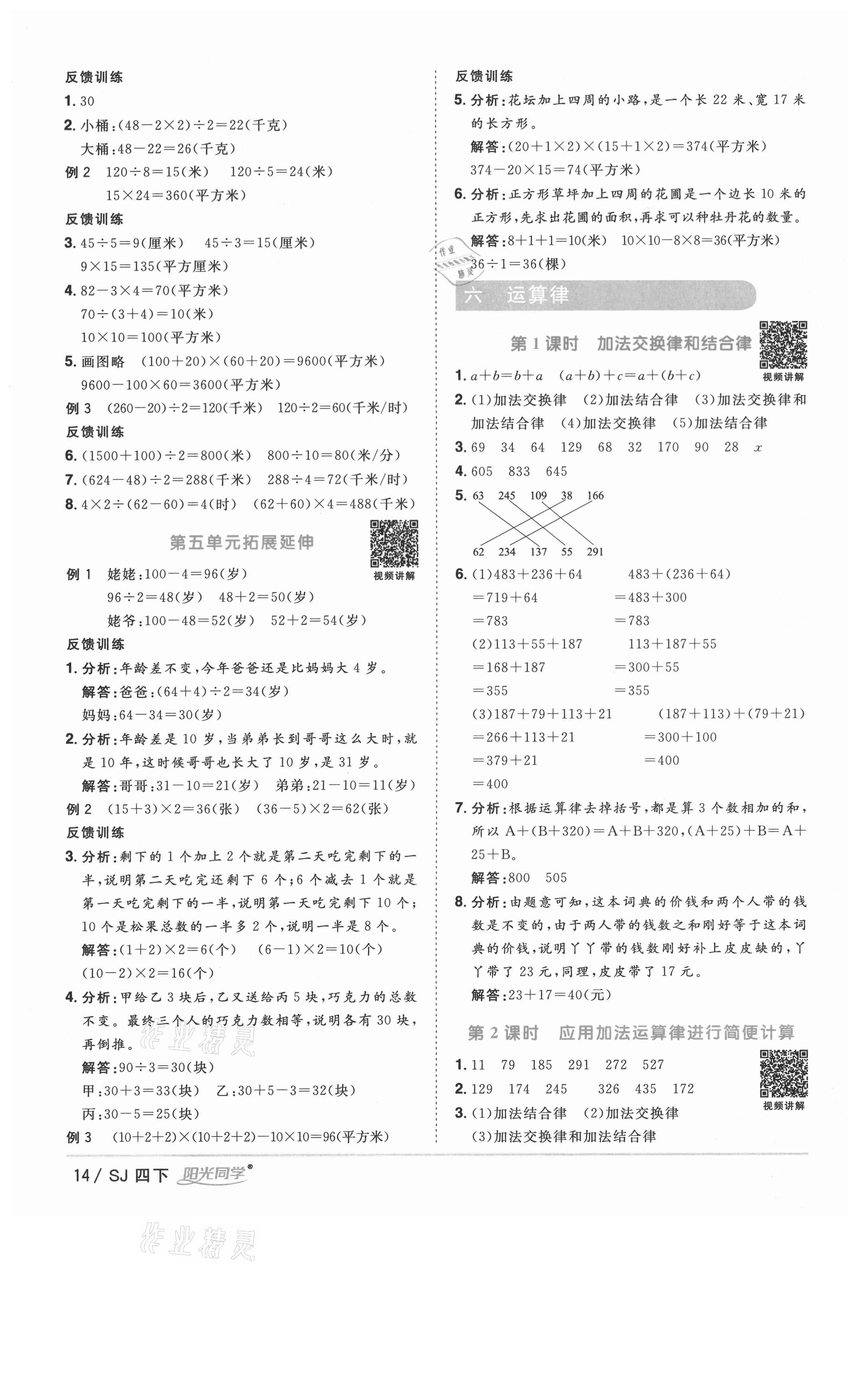 注:目前有些书本章节名称可能整理的还不是很完善,但都是按照顺序排列的,请同学们按照顺序仔细查找。练习册 2021年阳光同学课时优化作业四年级数学下册苏教版徐州专版 答案主要是用来给同学们做完题方便对答案用的,请勿直接抄袭。
