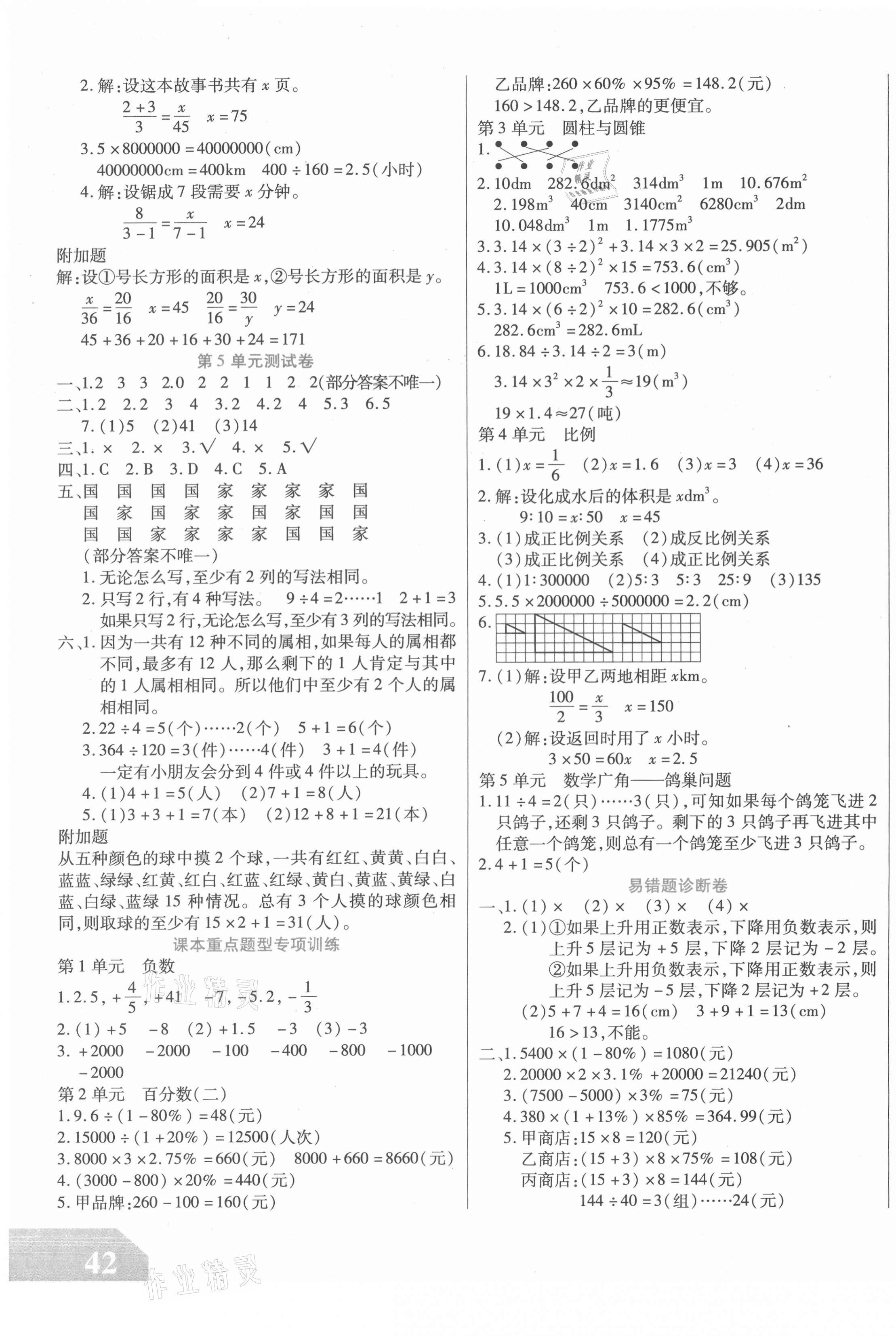 《2021年扬帆文化金考100分六年级数学下册人教版》