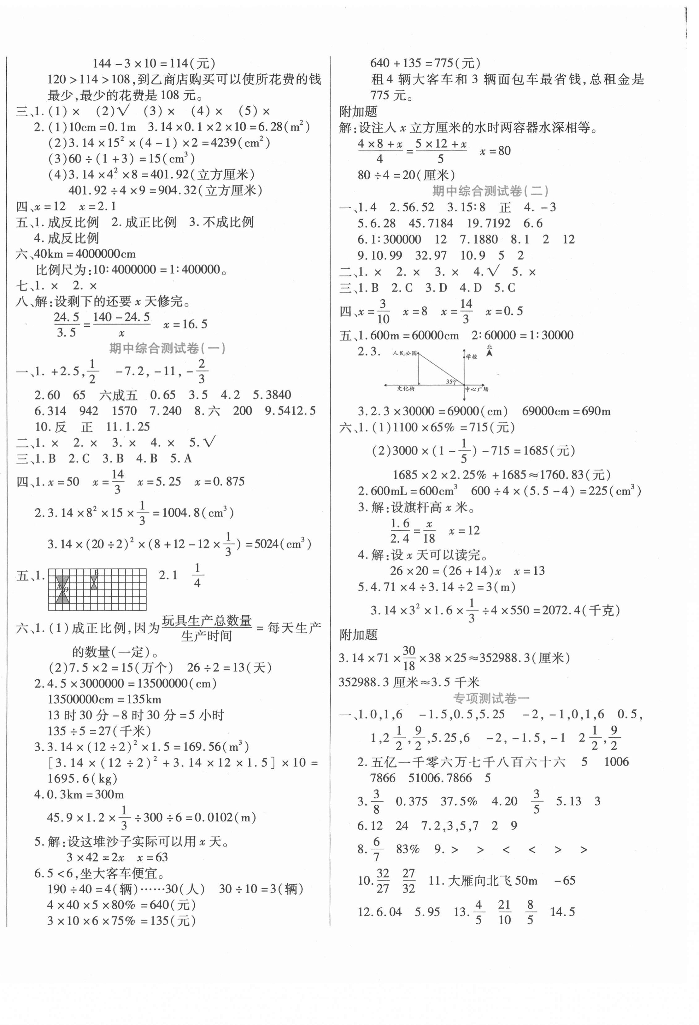 《2021年扬帆文化金考100分六年级数学下册人教版》