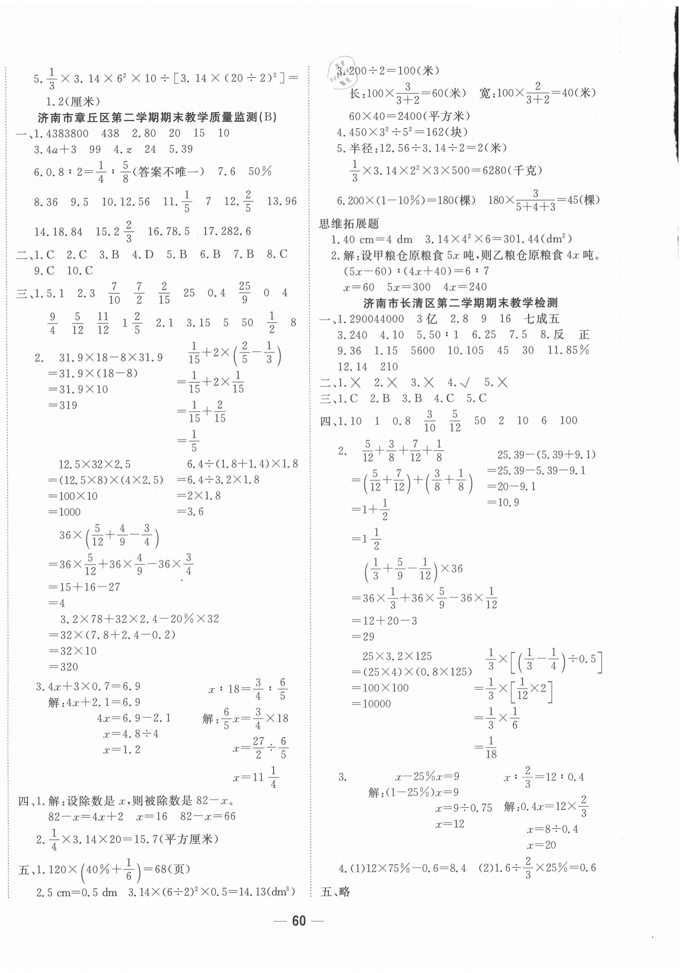 2021年学海金卷期末大赢家六年级数学下册人教版济南专版