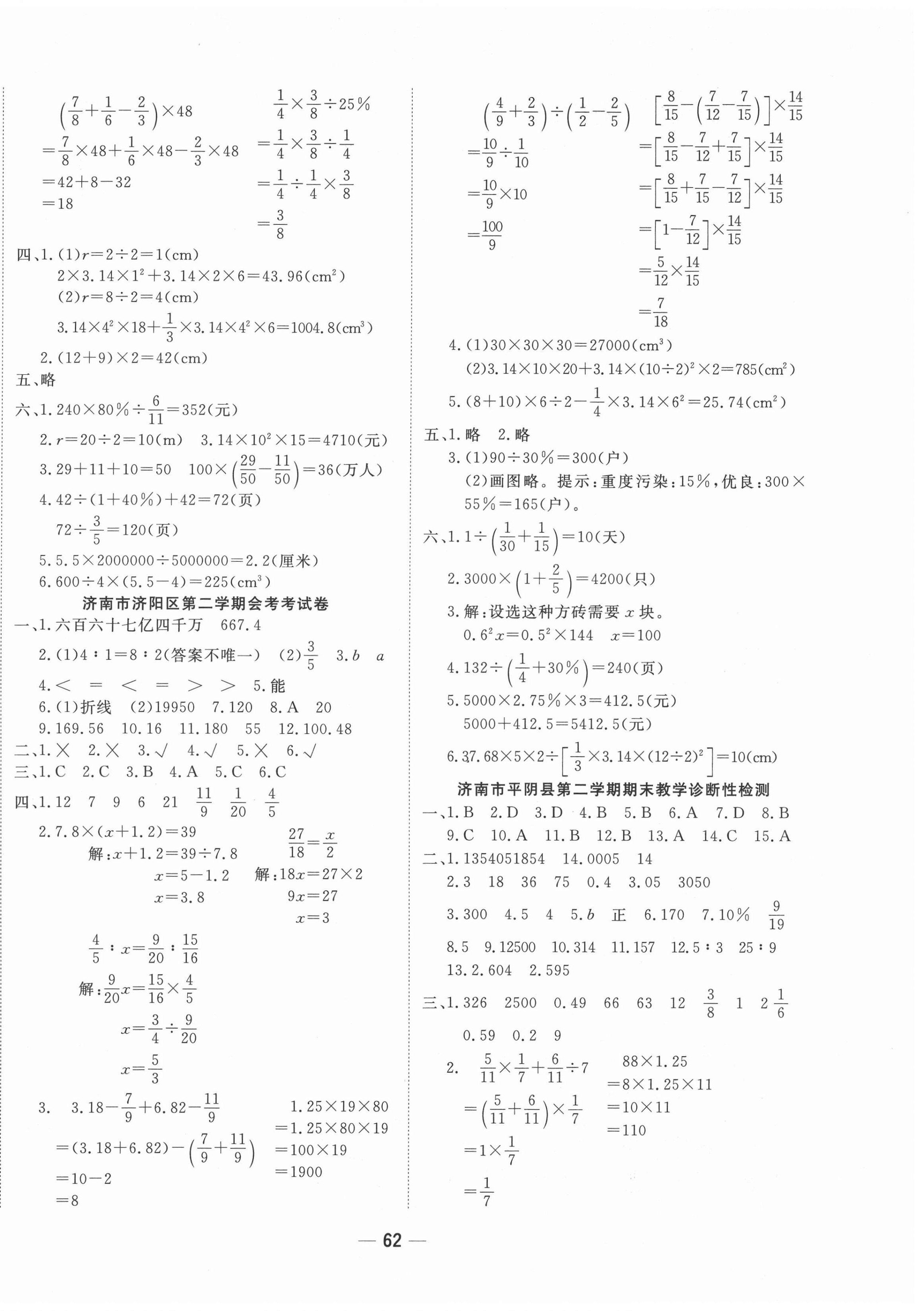 2021年学海金卷期末大赢家六年级数学下册人教版济南专版