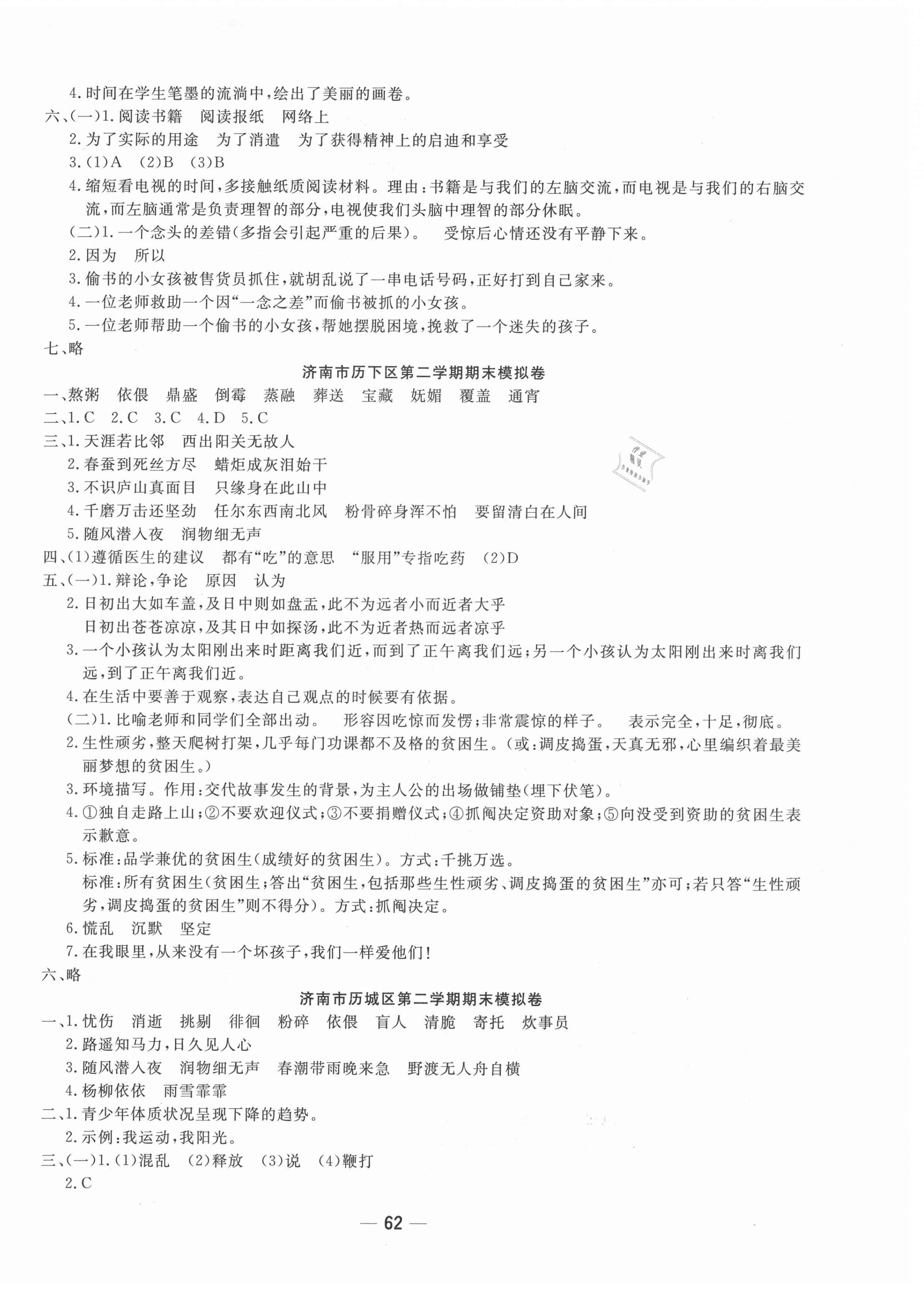 注:目前有些书本章节名称可能整理的还不是很完善,但都是按照顺序排列的,请同学们按照顺序仔细查找。练习册 2021年学海金卷期末大赢家六年级语文下册人教版济南专版 答案主要是用来给同学们做完题方便对答案用的,请勿直接抄袭。