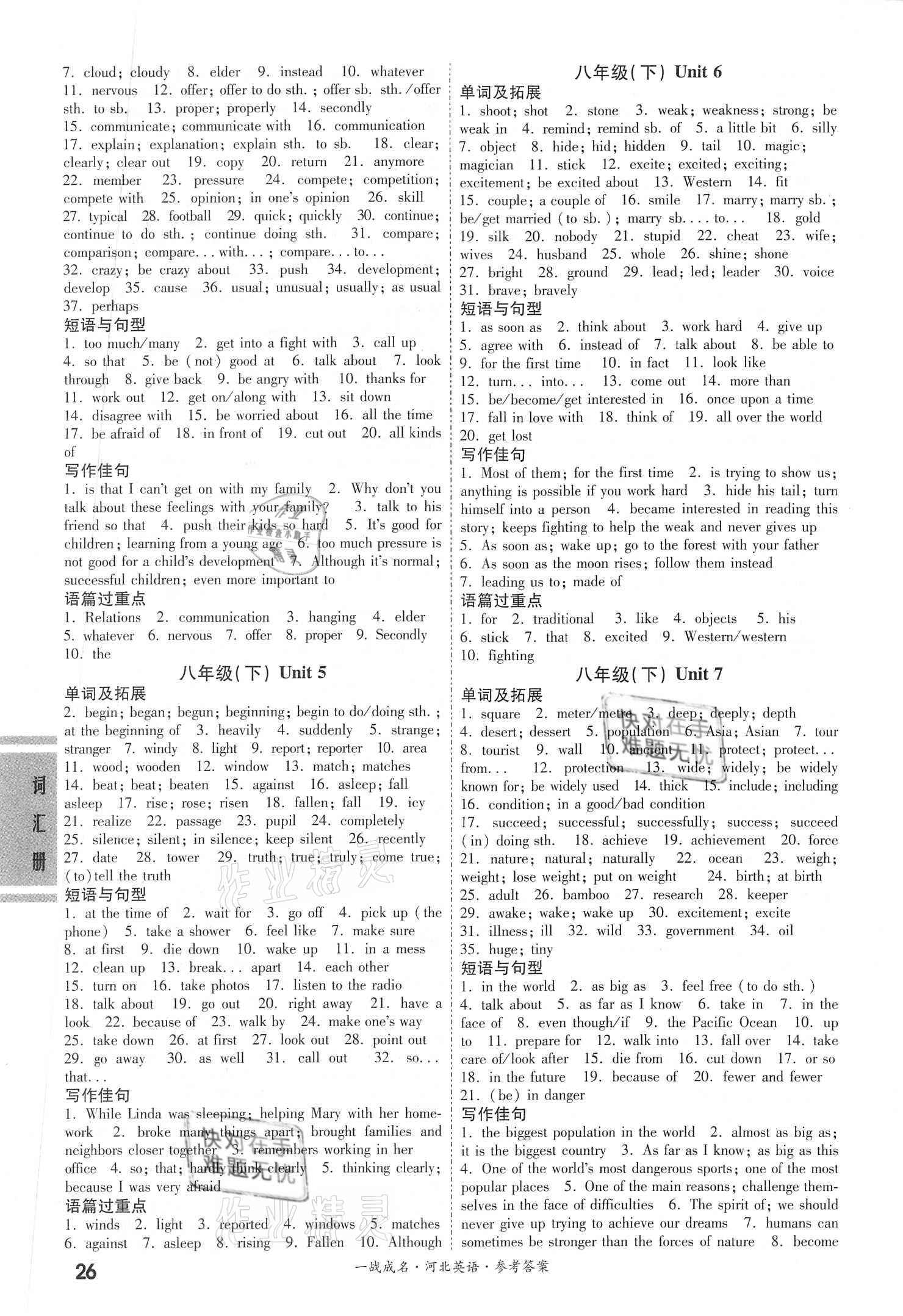 注:目前有些书本章节名称可能整理的还不是很完善,但都是按照顺序排列的,请同学们按照顺序仔细查找。练习册 2021年一战成名考前新方案英语河北专用 答案主要是用来给同学们做完题方便对答案用的,请勿直接抄袭。