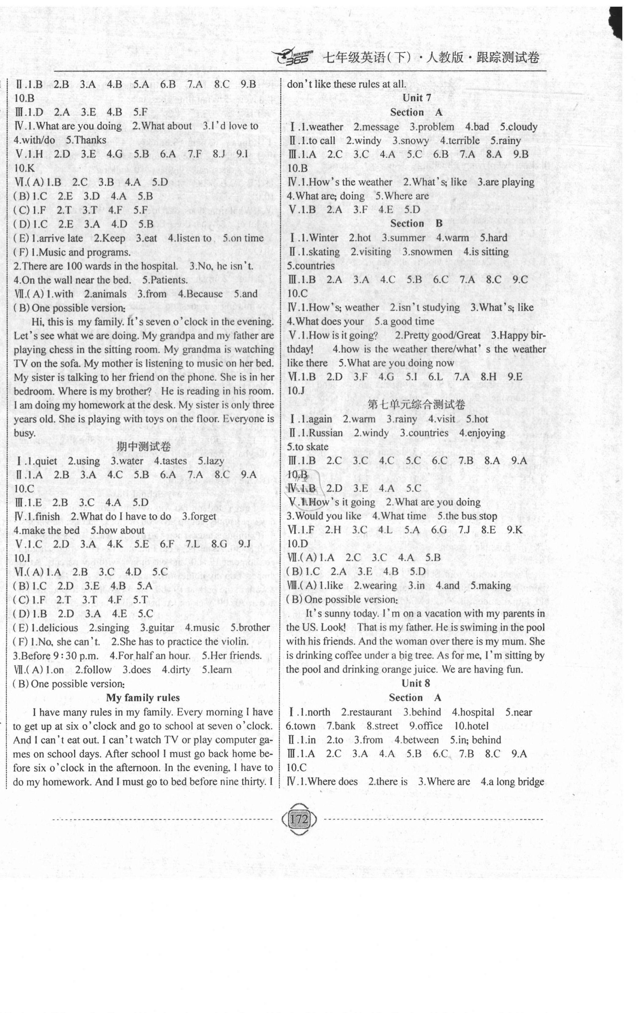 注:目前有些书本章节名称可能整理的还不是很完善,但都是按照顺序排列的,请同学们按照顺序仔细查找。练习册 2021年365天天学跟踪测试卷七年级英语下册人教版吉林专版 答案主要是用来给同学们做完题方便对答案用的,请勿直接抄袭。