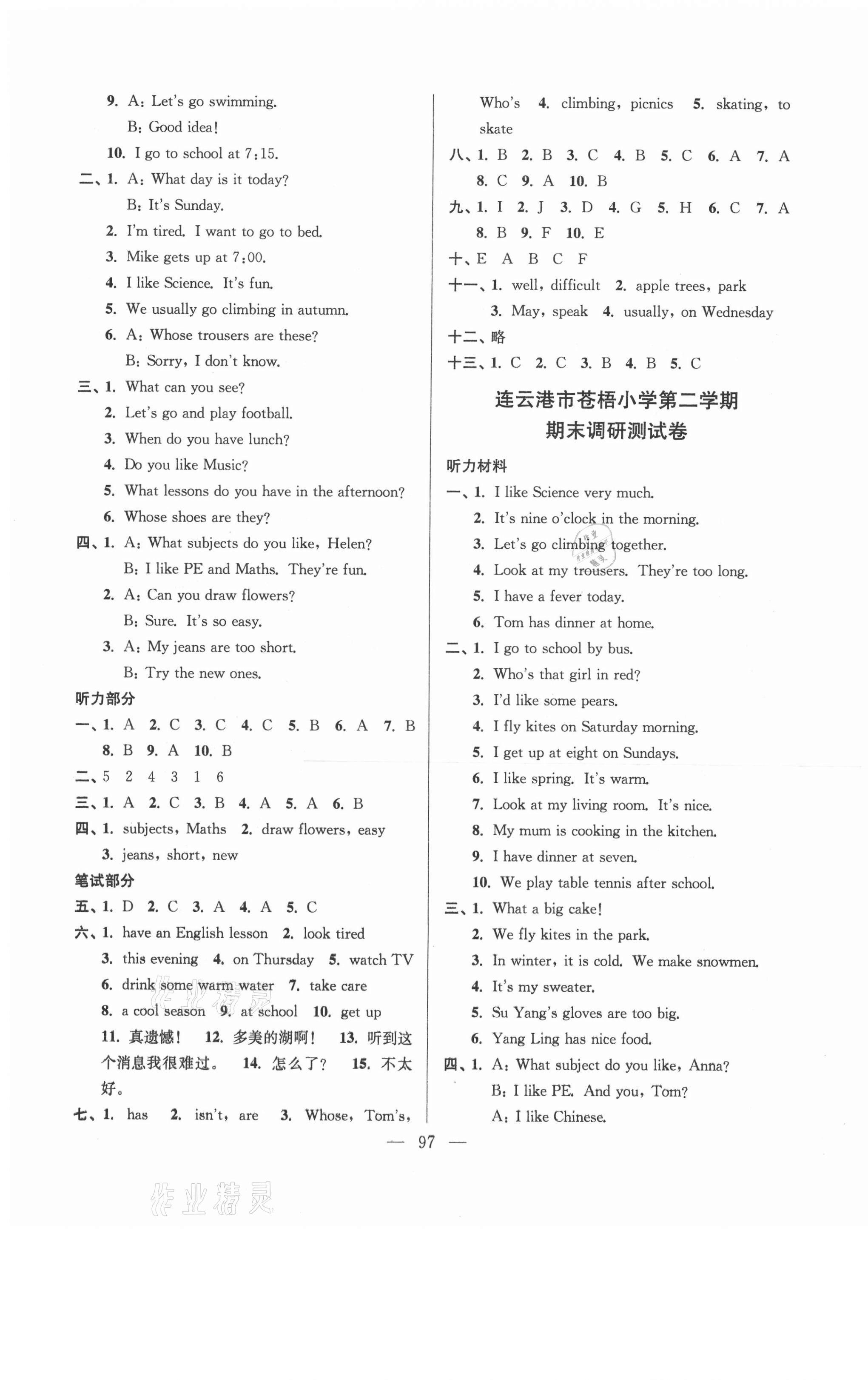 注:目前有些书本章节名称可能整理的还不是很完善,但都是按照顺序排列的,请同学们按照顺序仔细查找。练习册 2021年超能学典各地期末试卷精选四年级英语下册译林版 答案主要是用来给同学们做完题方便对答案用的,请勿直接抄袭。