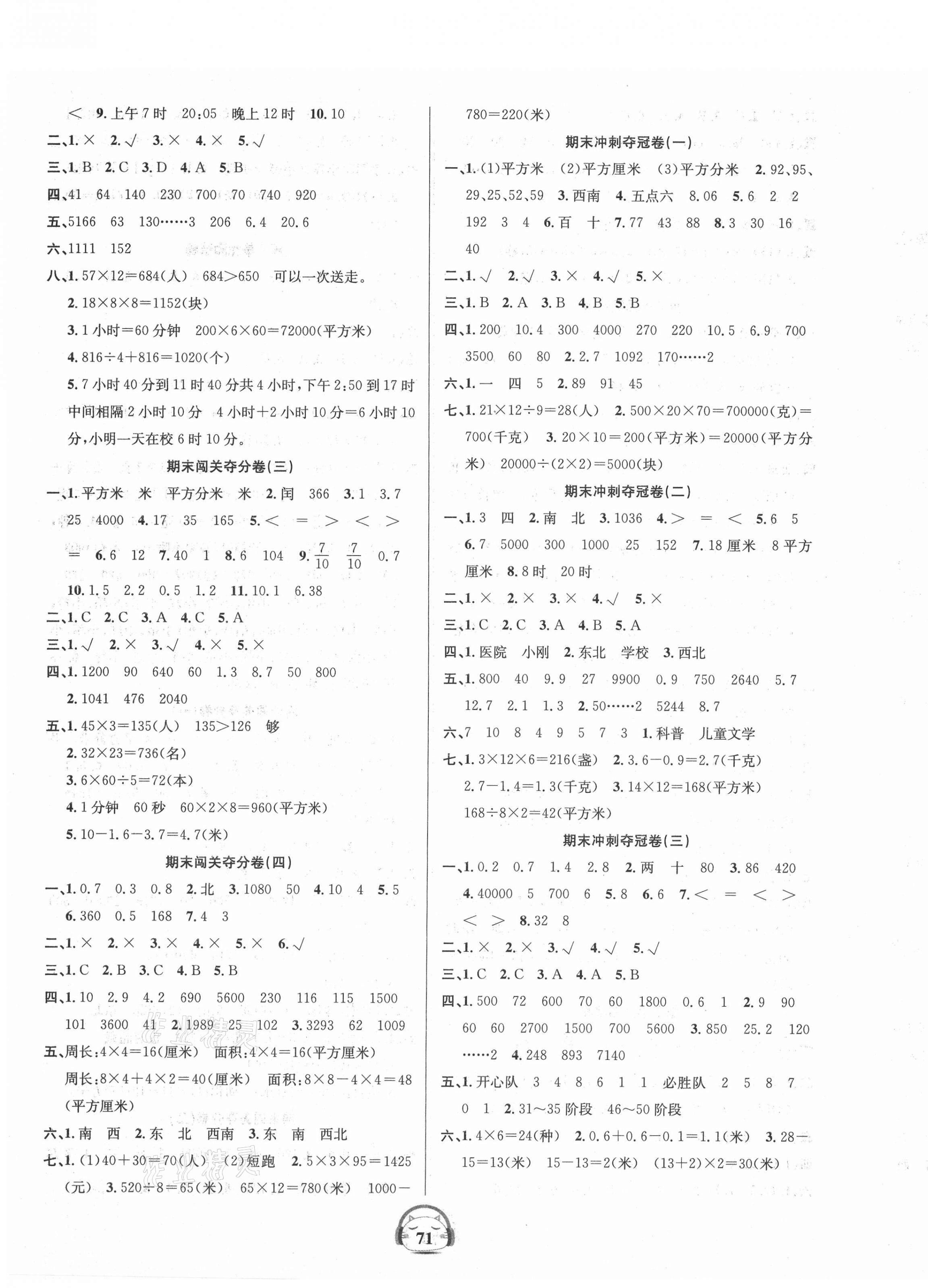 2021年品优好卷单元加期末卷三年级数学下册人教版