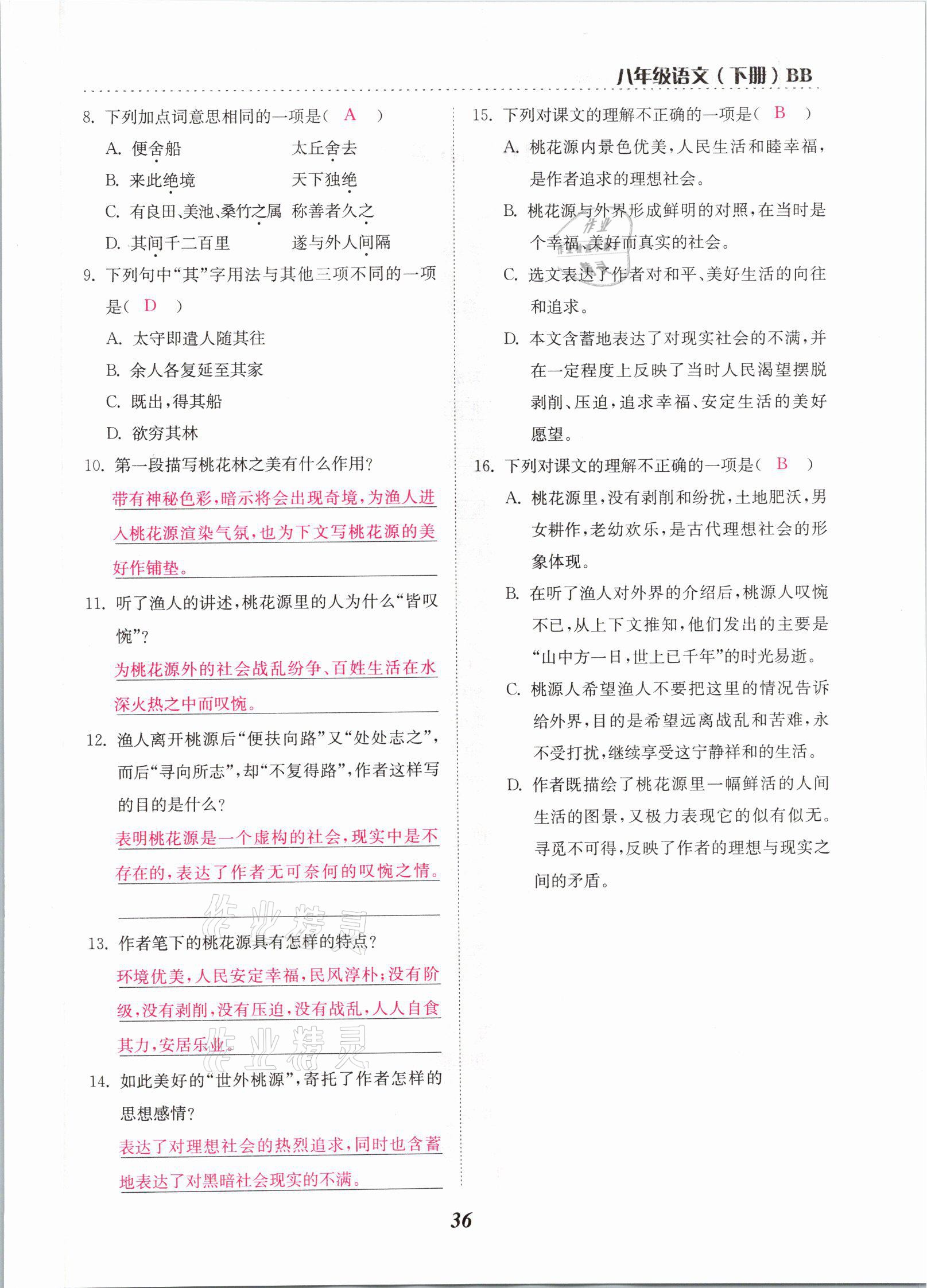 注:目前有些书本章节名称可能整理的还不是很完善,但都是按照顺序排列的,请同学们按照顺序仔细查找。练习册 2021年本土学练八年级语文下册部编版云南专版 答案主要是用来给同学们做完题方便对答案用的,请勿直接抄袭。