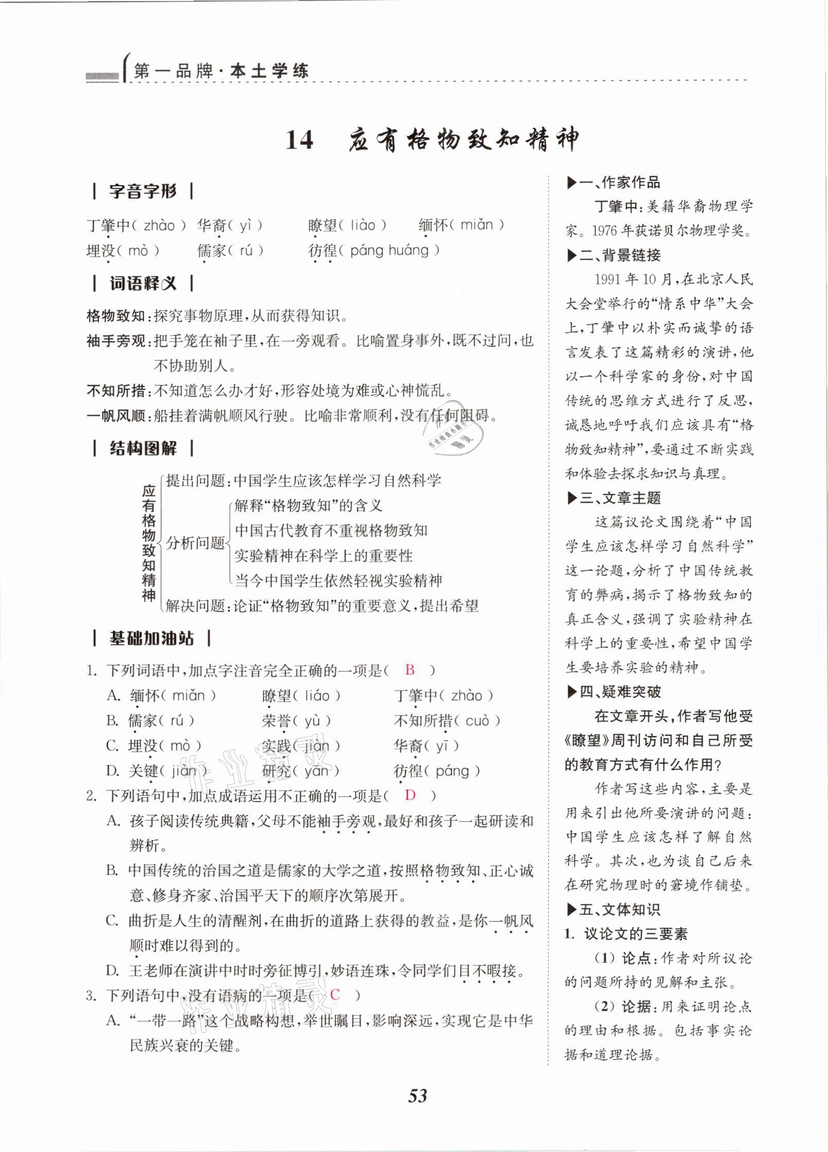 注:目前有些书本章节名称可能整理的还不是很完善,但都是按照顺序排列的,请同学们按照顺序仔细查找。练习册 2021年本土学练八年级语文下册部编版云南专版 答案主要是用来给同学们做完题方便对答案用的,请勿直接抄袭。