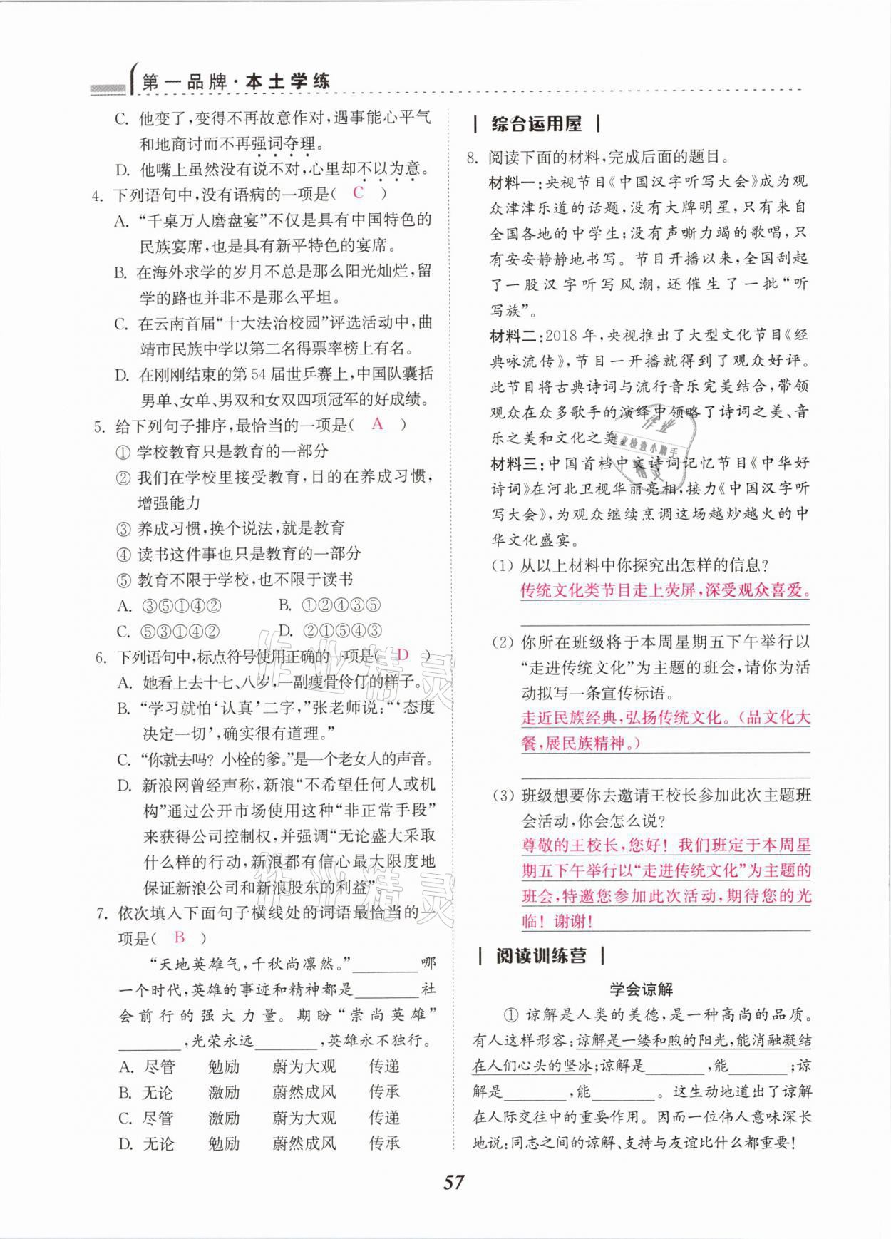 - 参考答案第57页