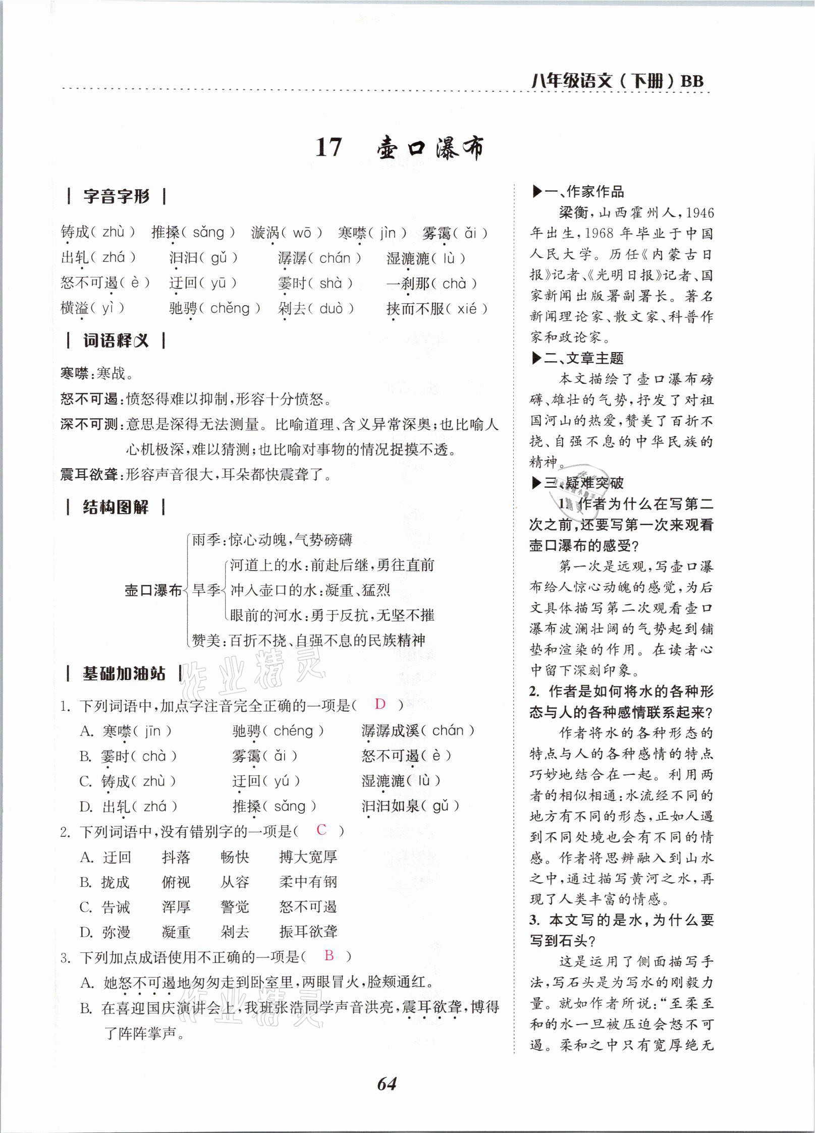 注:目前有些书本章节名称可能整理的还不是很完善,但都是按照顺序排列的,请同学们按照顺序仔细查找。练习册 2021年本土学练八年级语文下册部编版云南专版 答案主要是用来给同学们做完题方便对答案用的,请勿直接抄袭。