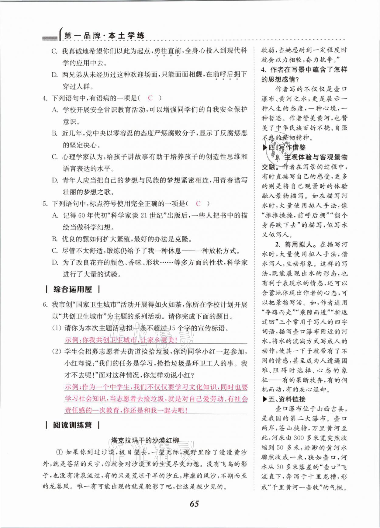 注:目前有些书本章节名称可能整理的还不是很完善,但都是按照顺序排列的,请同学们按照顺序仔细查找。练习册 2021年本土学练八年级语文下册部编版云南专版 答案主要是用来给同学们做完题方便对答案用的,请勿直接抄袭。
