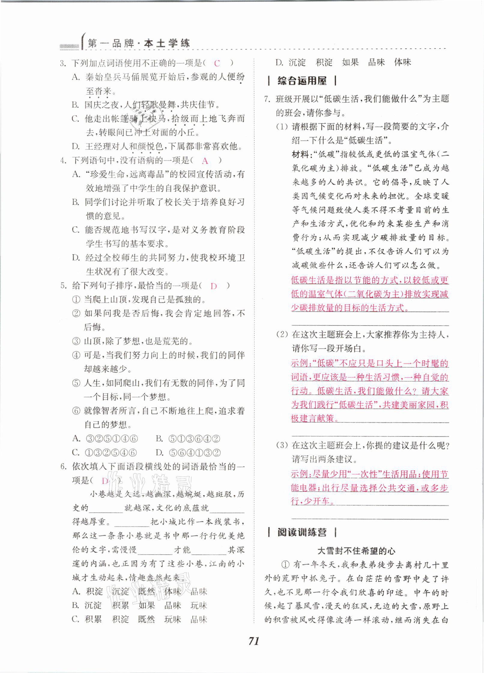 - 参考答案第71页