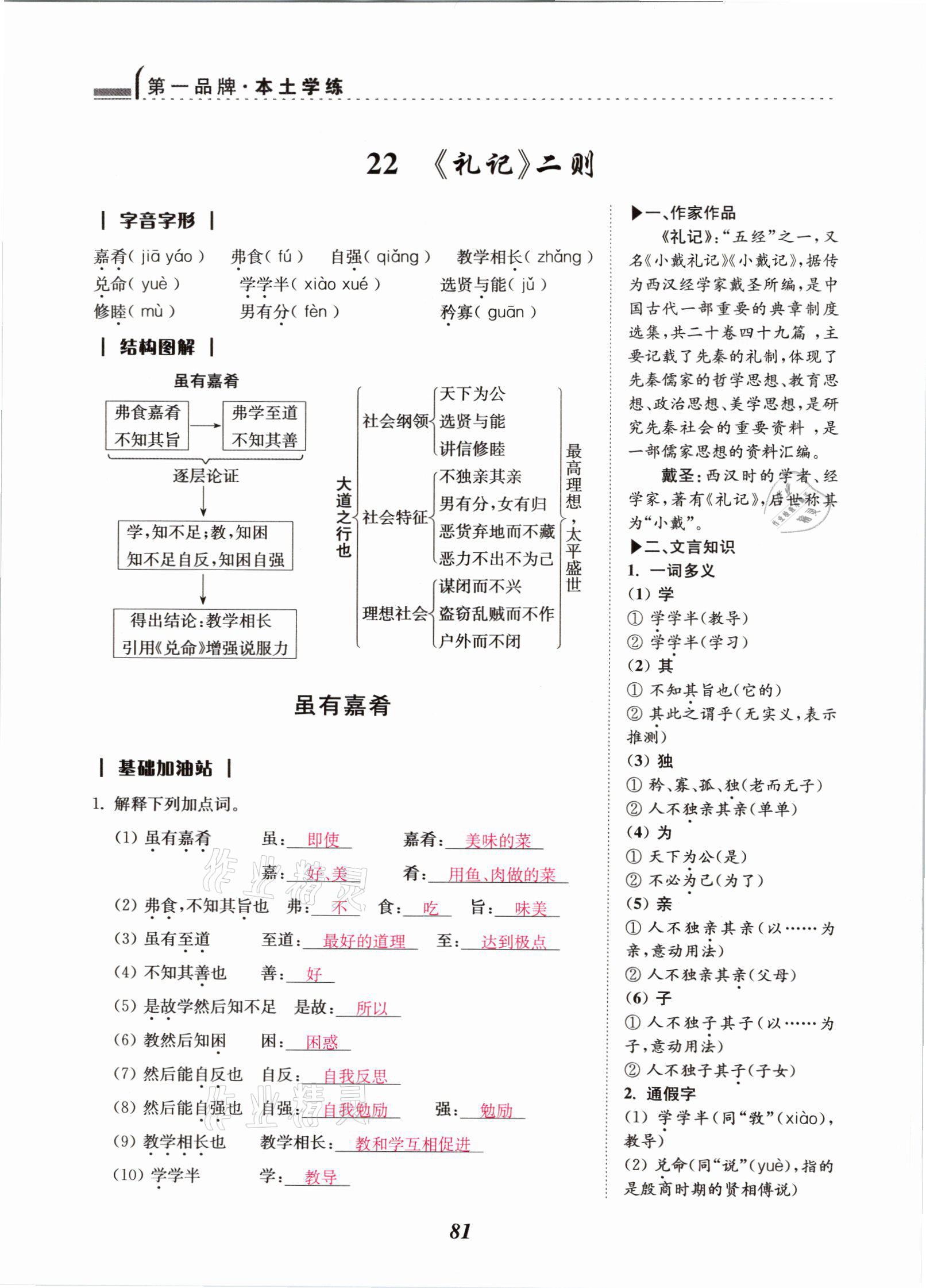 注:目前有些书本章节名称可能整理的还不是很完善,但都是按照顺序排列的,请同学们按照顺序仔细查找。练习册 2021年本土学练八年级语文下册部编版云南专版 答案主要是用来给同学们做完题方便对答案用的,请勿直接抄袭。
