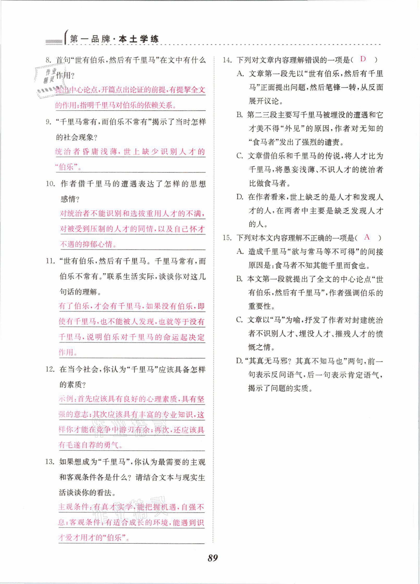 注:目前有些书本章节名称可能整理的还不是很完善,但都是按照顺序排列的,请同学们按照顺序仔细查找。练习册 2021年本土学练八年级语文下册部编版云南专版 答案主要是用来给同学们做完题方便对答案用的,请勿直接抄袭。