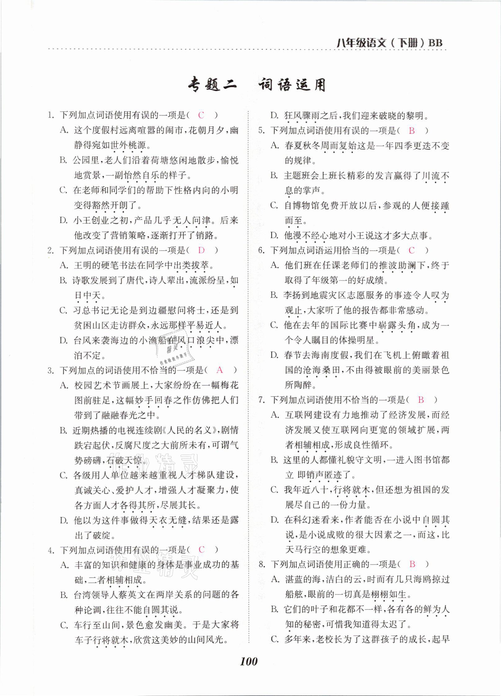 注:目前有些书本章节名称可能整理的还不是很完善,但都是按照顺序排列的,请同学们按照顺序仔细查找。练习册 2021年本土学练八年级语文下册部编版云南专版 答案主要是用来给同学们做完题方便对答案用的,请勿直接抄袭。