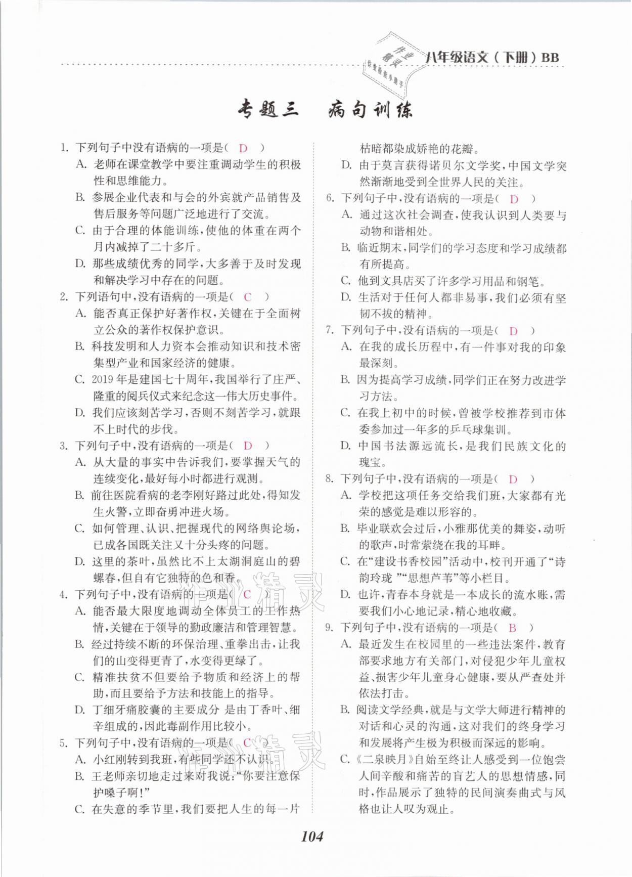 - 参考答案第104页