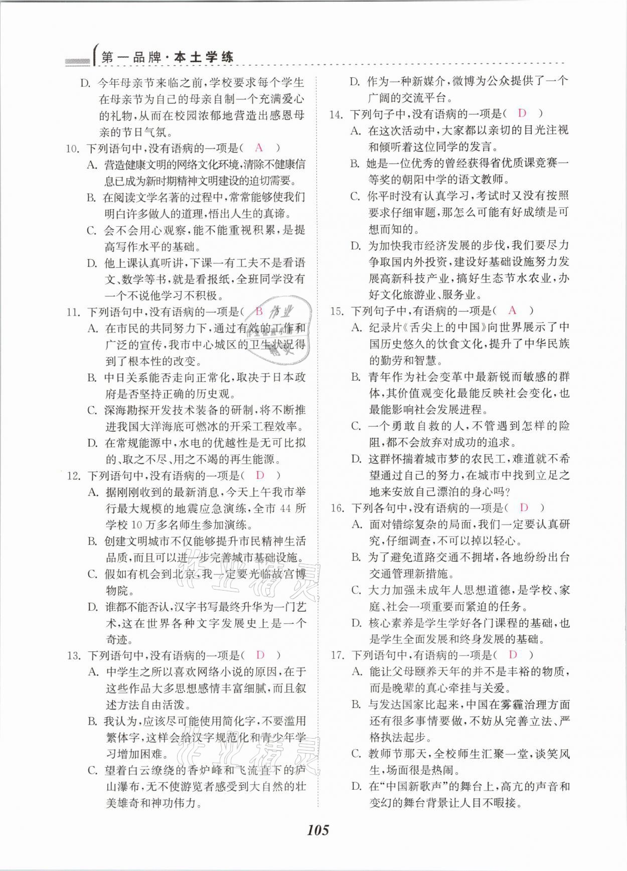 - 参考答案第105页