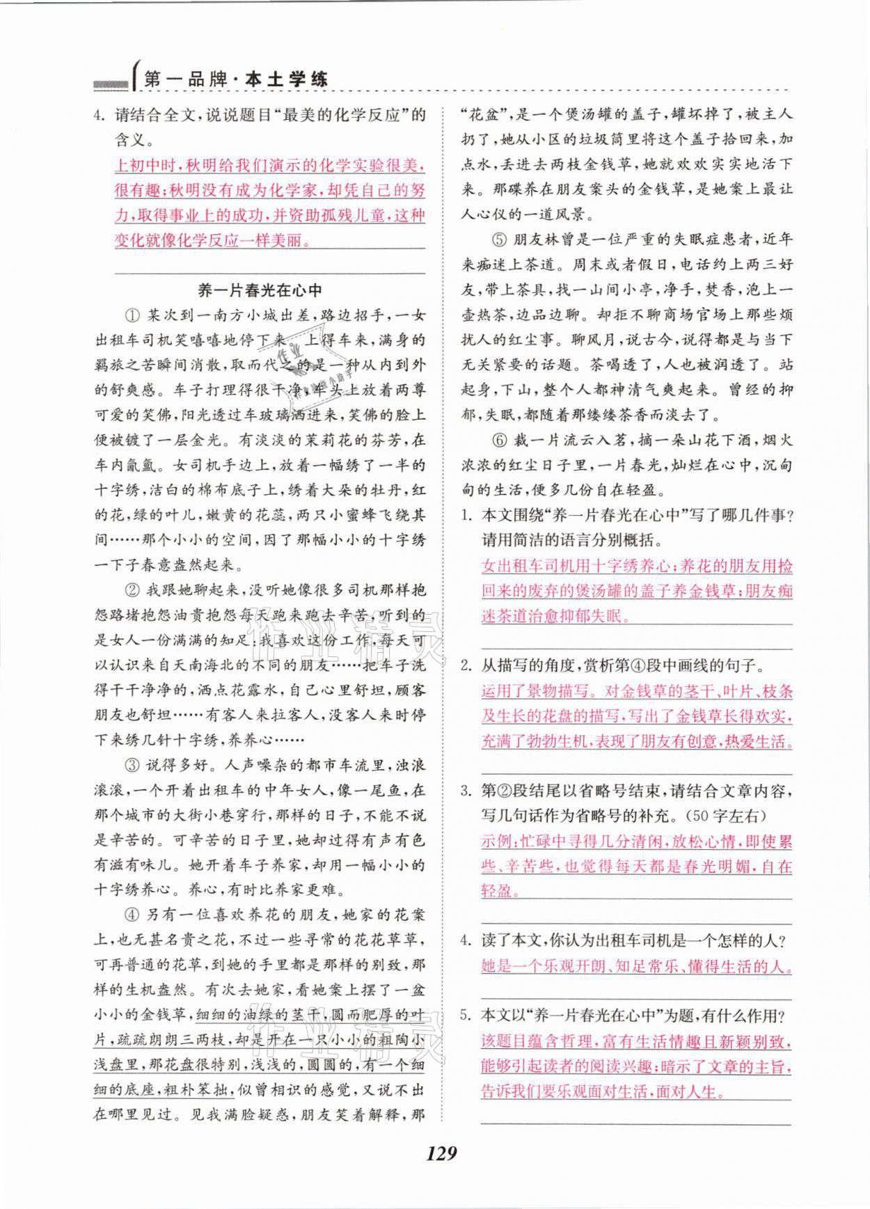 注:目前有些书本章节名称可能整理的还不是很完善,但都是按照顺序排列的,请同学们按照顺序仔细查找。练习册 2021年本土学练八年级语文下册部编版云南专版 答案主要是用来给同学们做完题方便对答案用的,请勿直接抄袭。