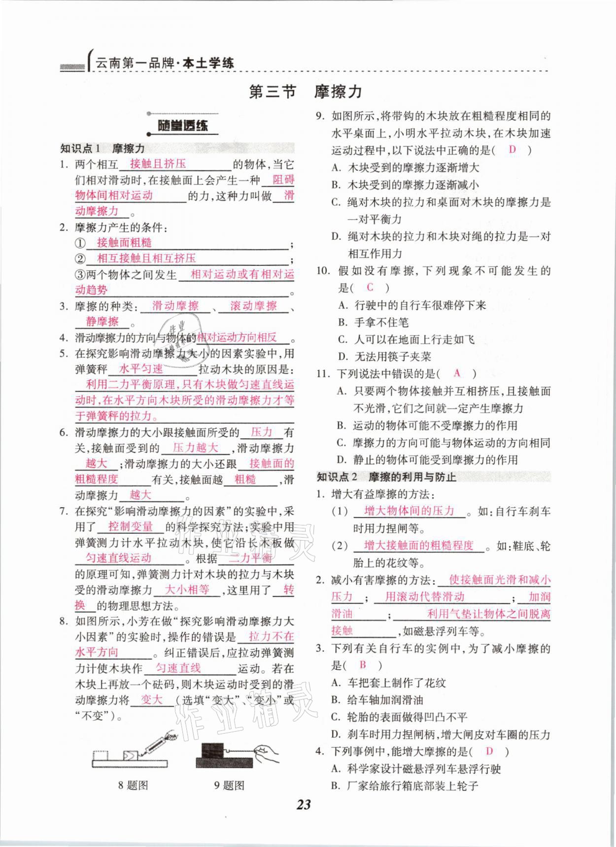 注:目前有些书本章节名称可能整理的还不是很完善,但都是按照顺序排列的,请同学们按照顺序仔细查找。练习册 2021年本土学练八年级物理下册人教版云南专版 答案主要是用来给同学们做完题方便对答案用的,请勿直接抄袭。