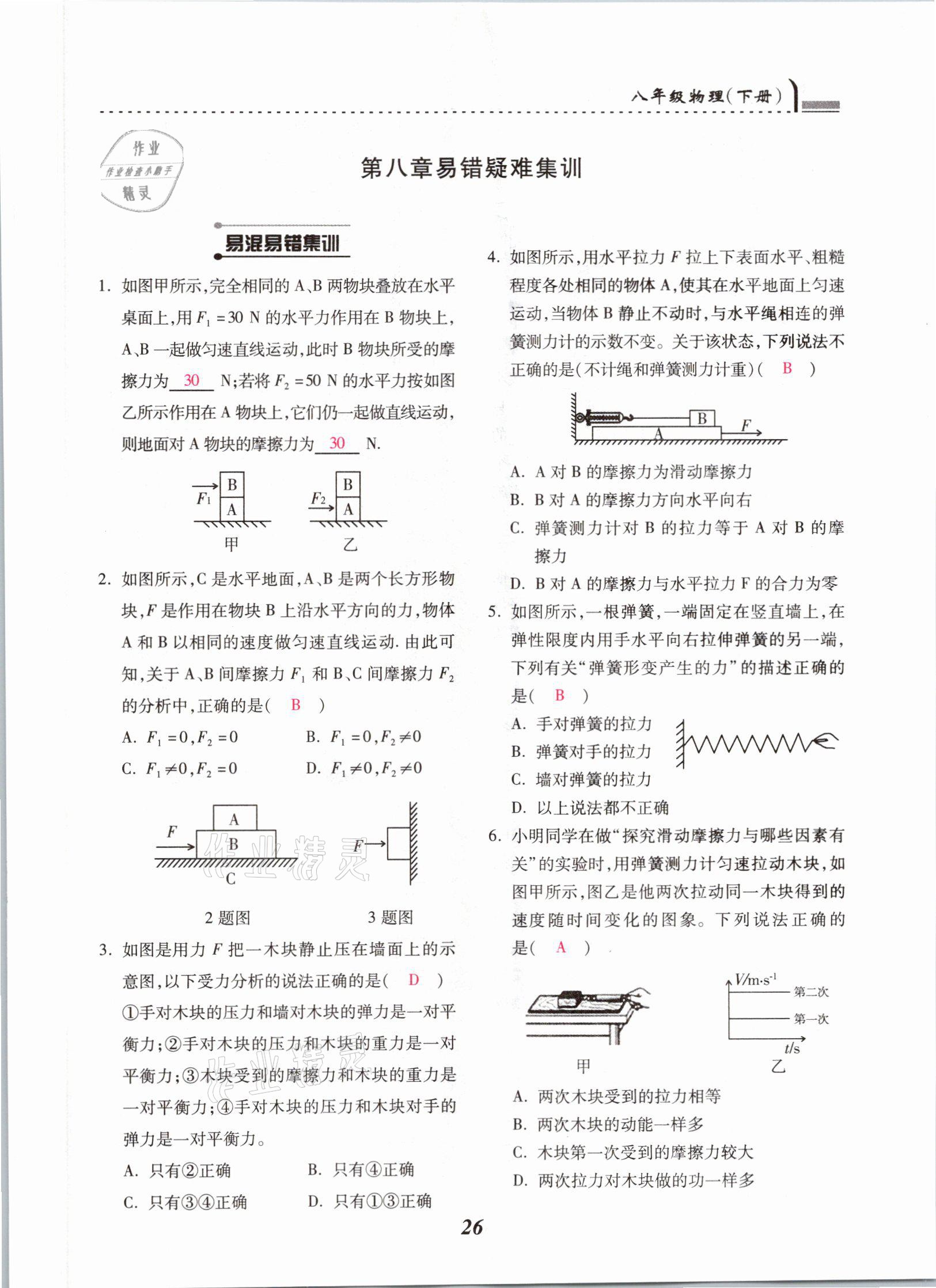 注:目前有些书本章节名称可能整理的还不是很完善,但都是按照顺序排列的,请同学们按照顺序仔细查找。练习册 2021年本土学练八年级物理下册人教版云南专版 答案主要是用来给同学们做完题方便对答案用的,请勿直接抄袭。