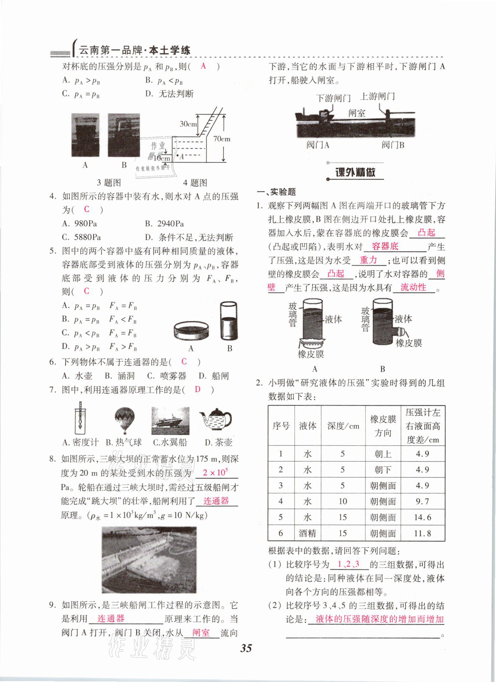 注:目前有些书本章节名称可能整理的还不是很完善,但都是按照顺序排列的,请同学们按照顺序仔细查找。练习册 2021年本土学练八年级物理下册人教版云南专版 答案主要是用来给同学们做完题方便对答案用的,请勿直接抄袭。