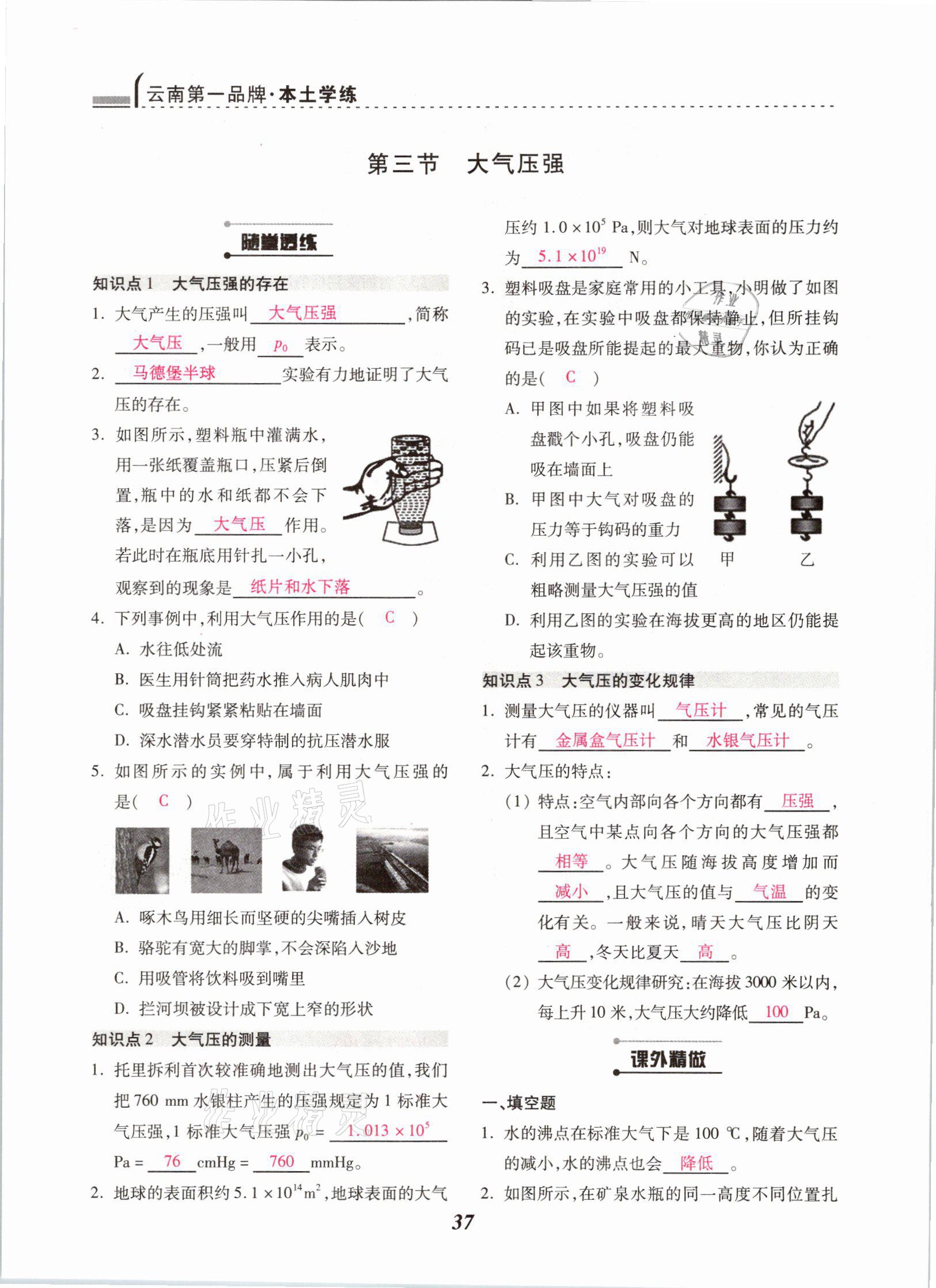 注:目前有些书本章节名称可能整理的还不是很完善,但都是按照顺序排列的,请同学们按照顺序仔细查找。练习册 2021年本土学练八年级物理下册人教版云南专版 答案主要是用来给同学们做完题方便对答案用的,请勿直接抄袭。
