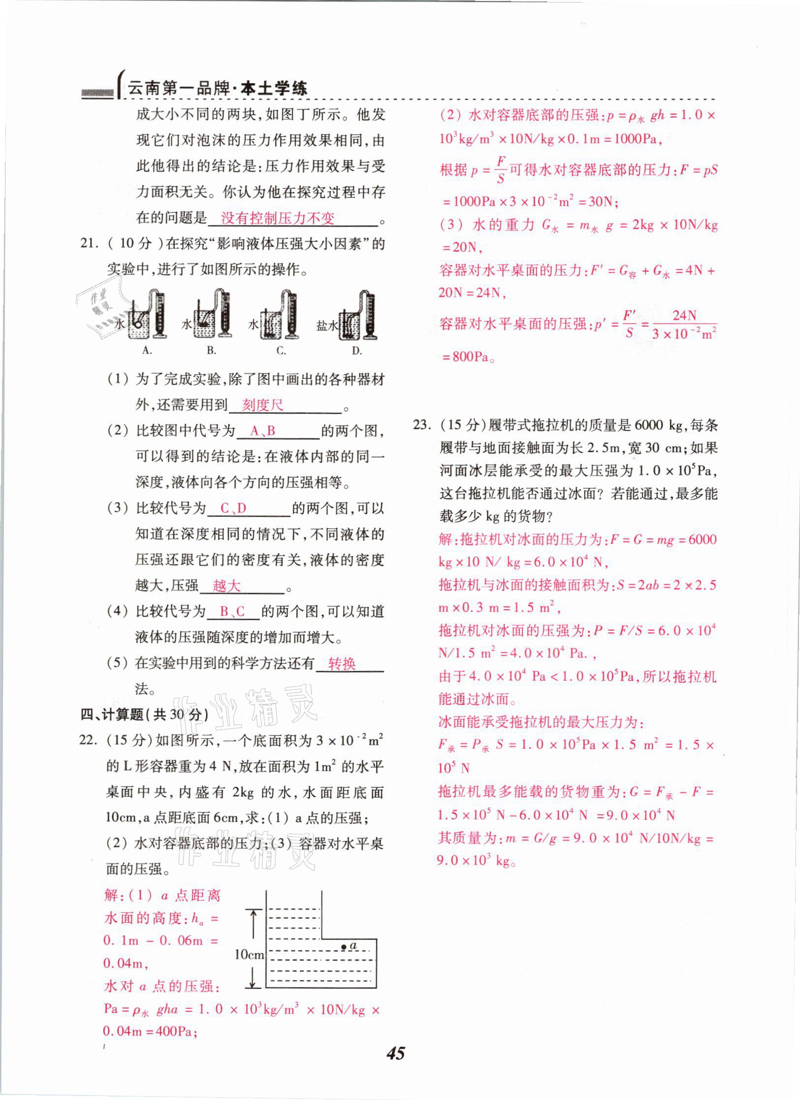 注:目前有些书本章节名称可能整理的还不是很完善,但都是按照顺序排列的,请同学们按照顺序仔细查找。练习册 2021年本土学练八年级物理下册人教版云南专版 答案主要是用来给同学们做完题方便对答案用的,请勿直接抄袭。