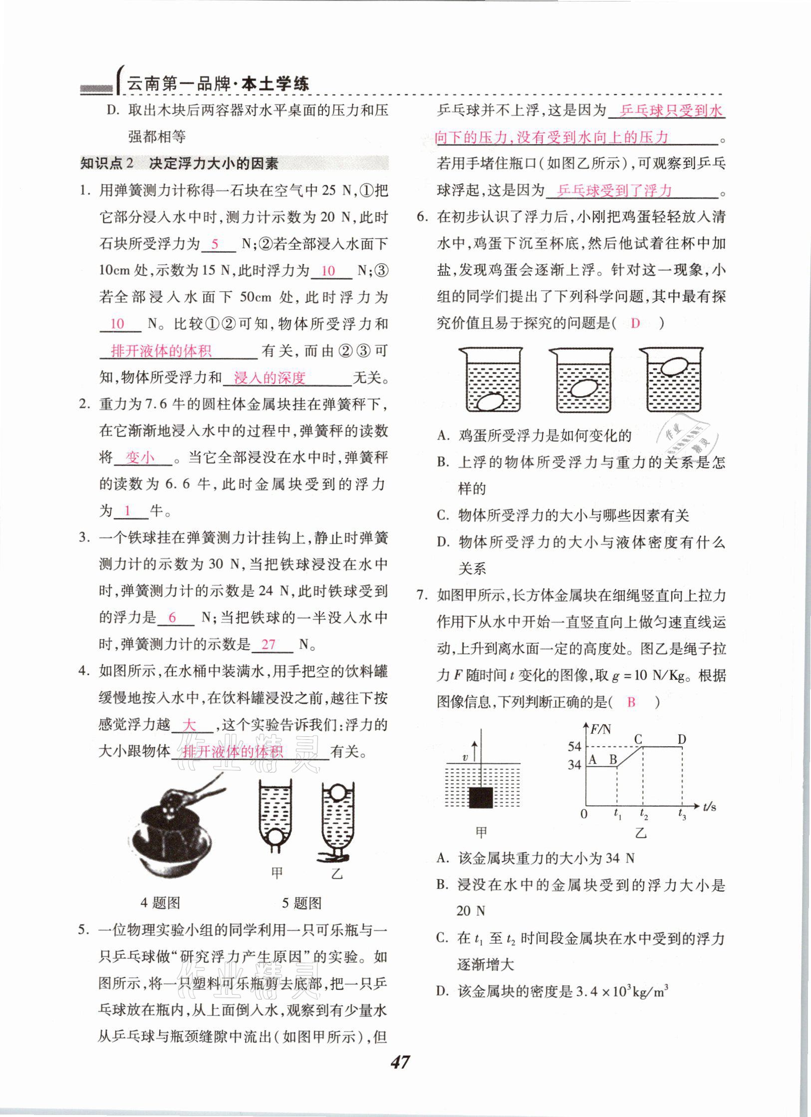 注:目前有些书本章节名称可能整理的还不是很完善,但都是按照顺序排列的,请同学们按照顺序仔细查找。练习册 2021年本土学练八年级物理下册人教版云南专版 答案主要是用来给同学们做完题方便对答案用的,请勿直接抄袭。