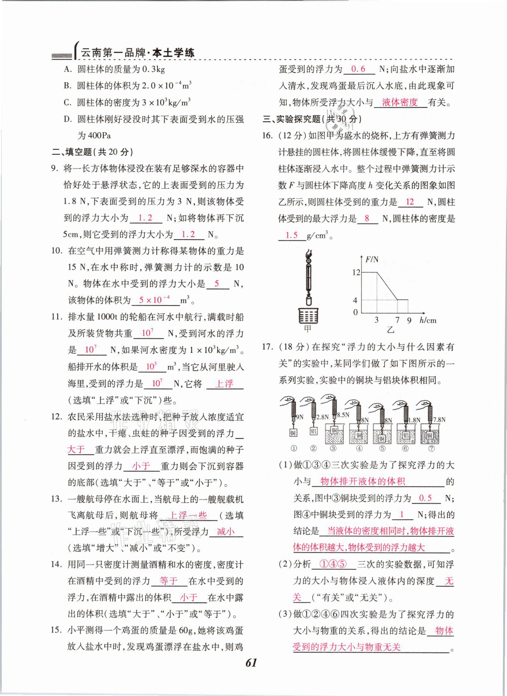 注:目前有些书本章节名称可能整理的还不是很完善,但都是按照顺序排列的,请同学们按照顺序仔细查找。练习册 2021年本土学练八年级物理下册人教版云南专版 答案主要是用来给同学们做完题方便对答案用的,请勿直接抄袭。