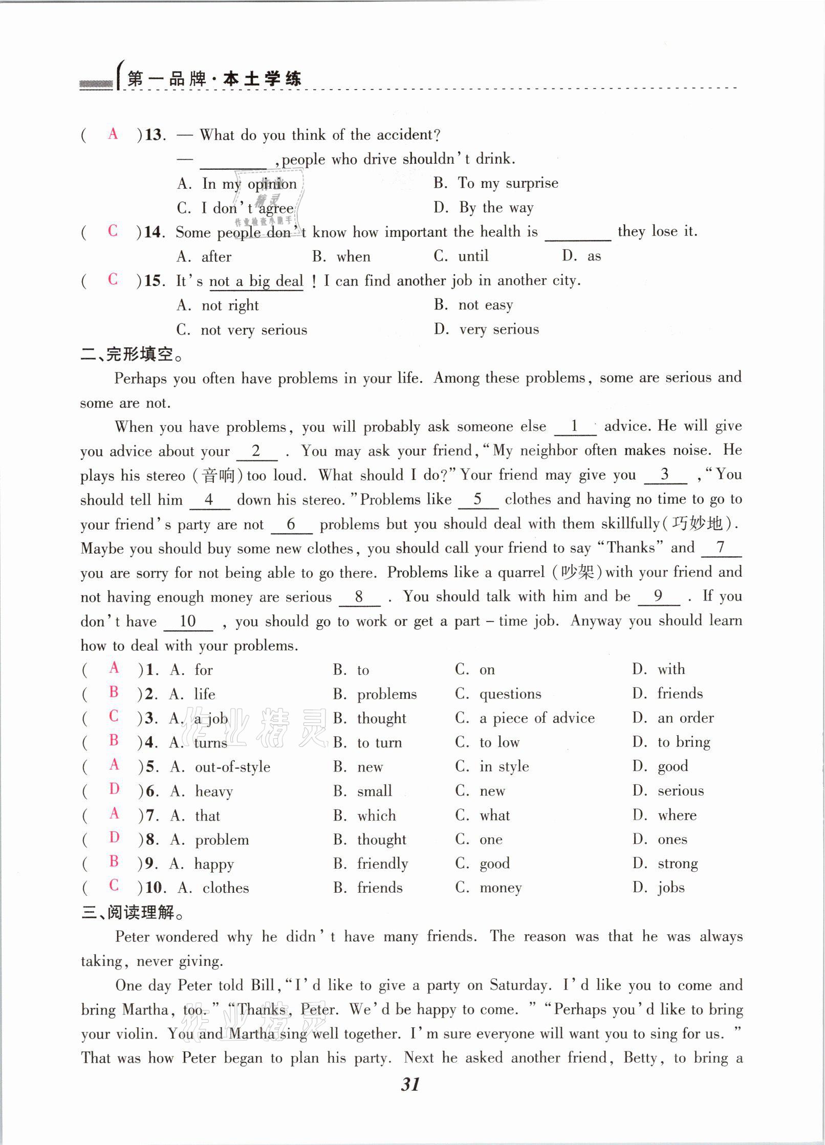 注:目前有些书本章节名称可能整理的还不是很完善,但都是按照顺序排列的,请同学们按照顺序仔细查找。练习册 2021年本土学练八年级英语下册人教版云南专版 答案主要是用来给同学们做完题方便对答案用的,请勿直接抄袭。