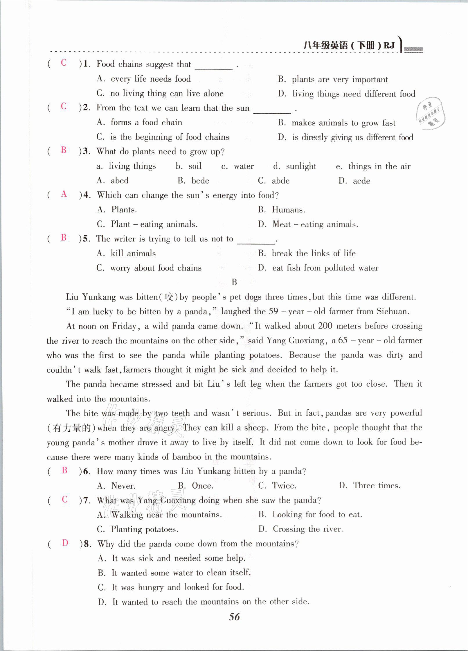 注:目前有些书本章节名称可能整理的还不是很完善,但都是按照顺序排列的,请同学们按照顺序仔细查找。练习册 2021年本土学练八年级英语下册人教版云南专版 答案主要是用来给同学们做完题方便对答案用的,请勿直接抄袭。