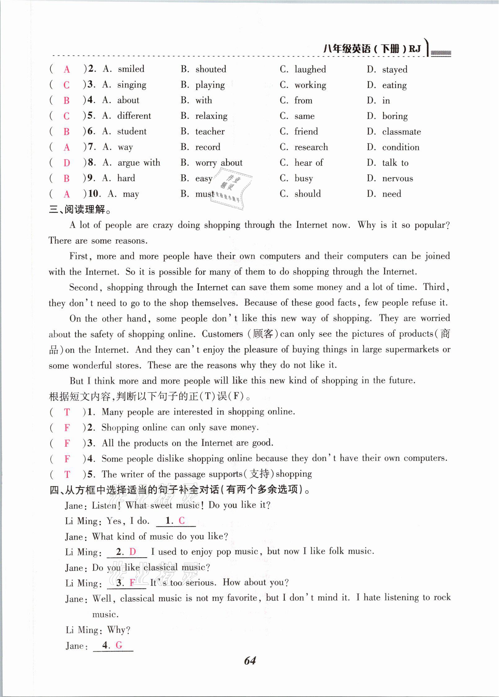注:目前有些书本章节名称可能整理的还不是很完善,但都是按照顺序排列的,请同学们按照顺序仔细查找。练习册 2021年本土学练八年级英语下册人教版云南专版 答案主要是用来给同学们做完题方便对答案用的,请勿直接抄袭。