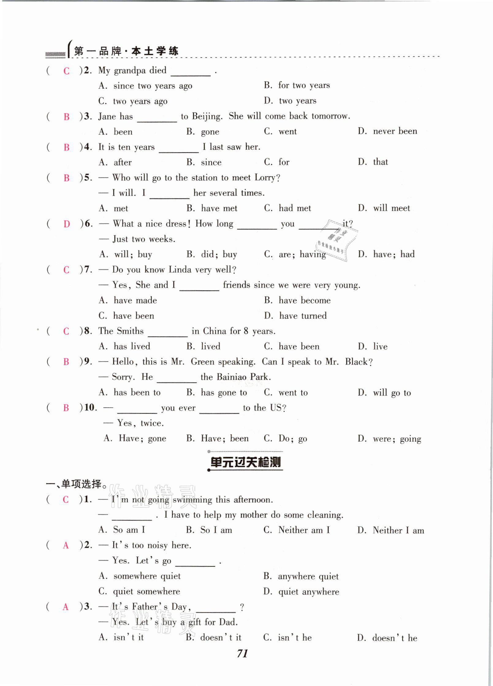 注:目前有些书本章节名称可能整理的还不是很完善,但都是按照顺序排列的,请同学们按照顺序仔细查找。练习册 2021年本土学练八年级英语下册人教版云南专版 答案主要是用来给同学们做完题方便对答案用的,请勿直接抄袭。