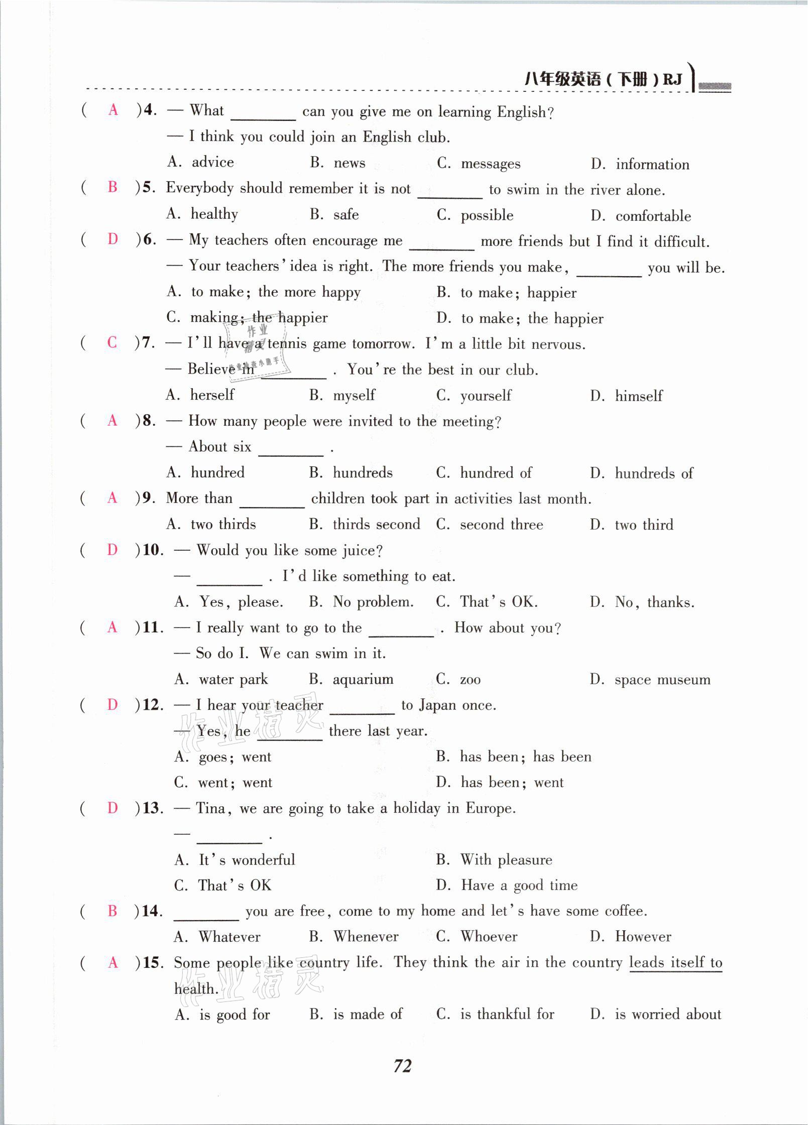 注:目前有些书本章节名称可能整理的还不是很完善,但都是按照顺序排列的,请同学们按照顺序仔细查找。练习册 2021年本土学练八年级英语下册人教版云南专版 答案主要是用来给同学们做完题方便对答案用的,请勿直接抄袭。
