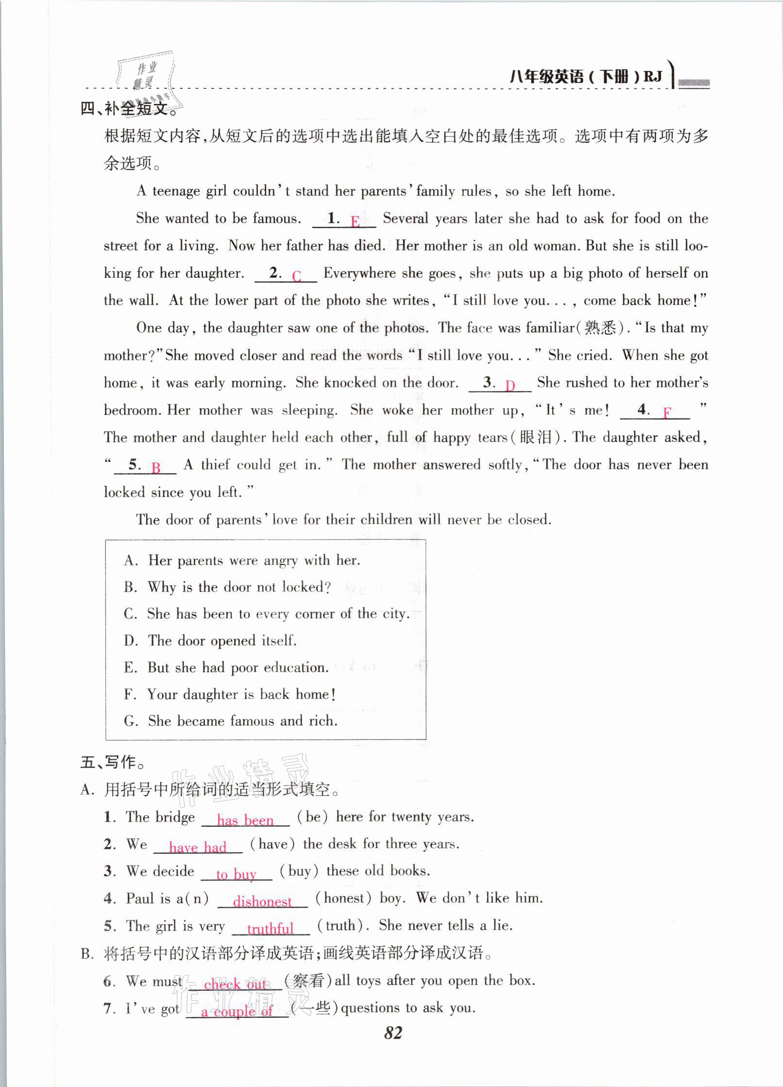 注:目前有些书本章节名称可能整理的还不是很完善,但都是按照顺序排列的,请同学们按照顺序仔细查找。练习册 2021年本土学练八年级英语下册人教版云南专版 答案主要是用来给同学们做完题方便对答案用的,请勿直接抄袭。