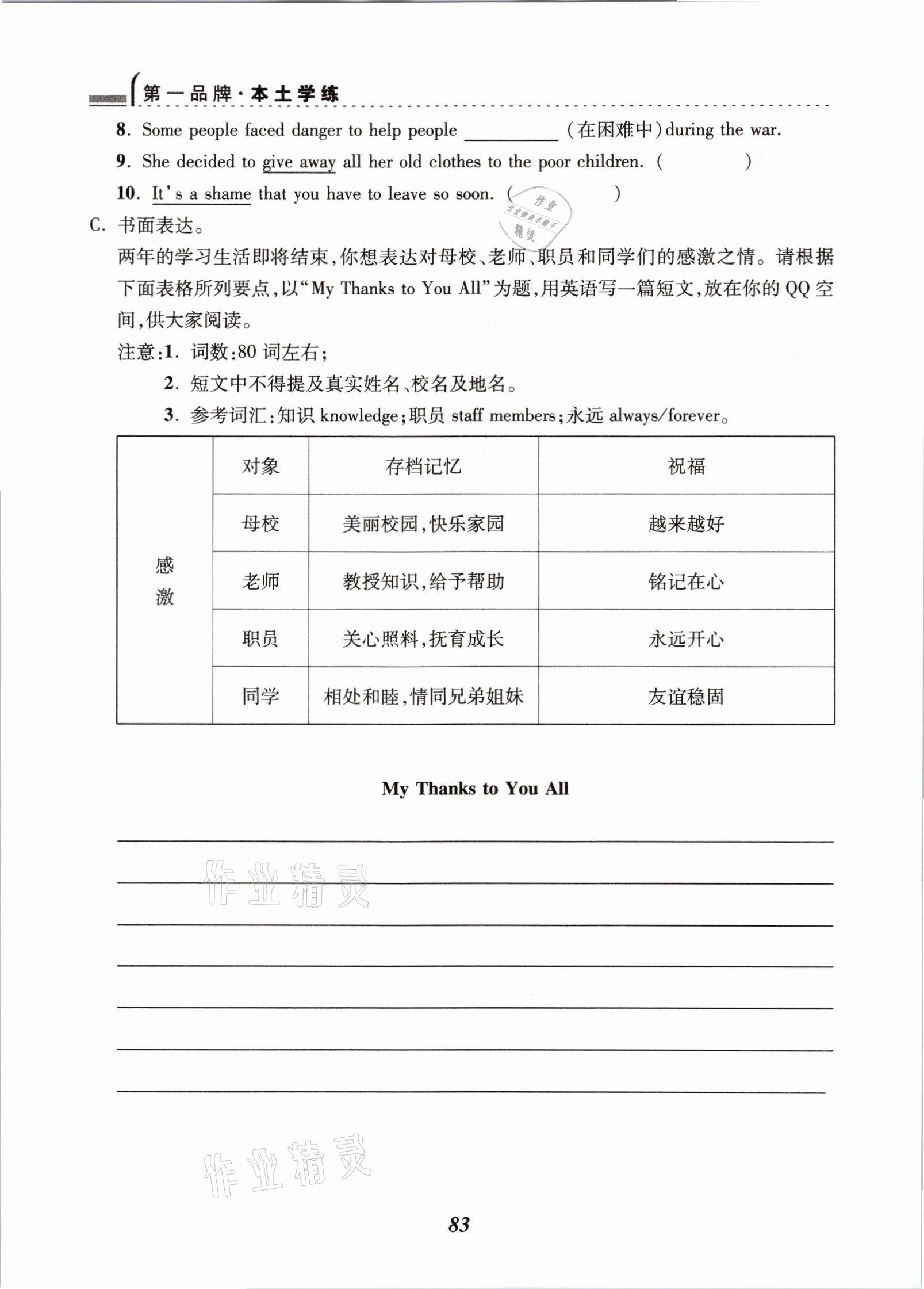 注:目前有些书本章节名称可能整理的还不是很完善,但都是按照顺序排列的,请同学们按照顺序仔细查找。练习册 2021年本土学练八年级英语下册人教版云南专版 答案主要是用来给同学们做完题方便对答案用的,请勿直接抄袭。