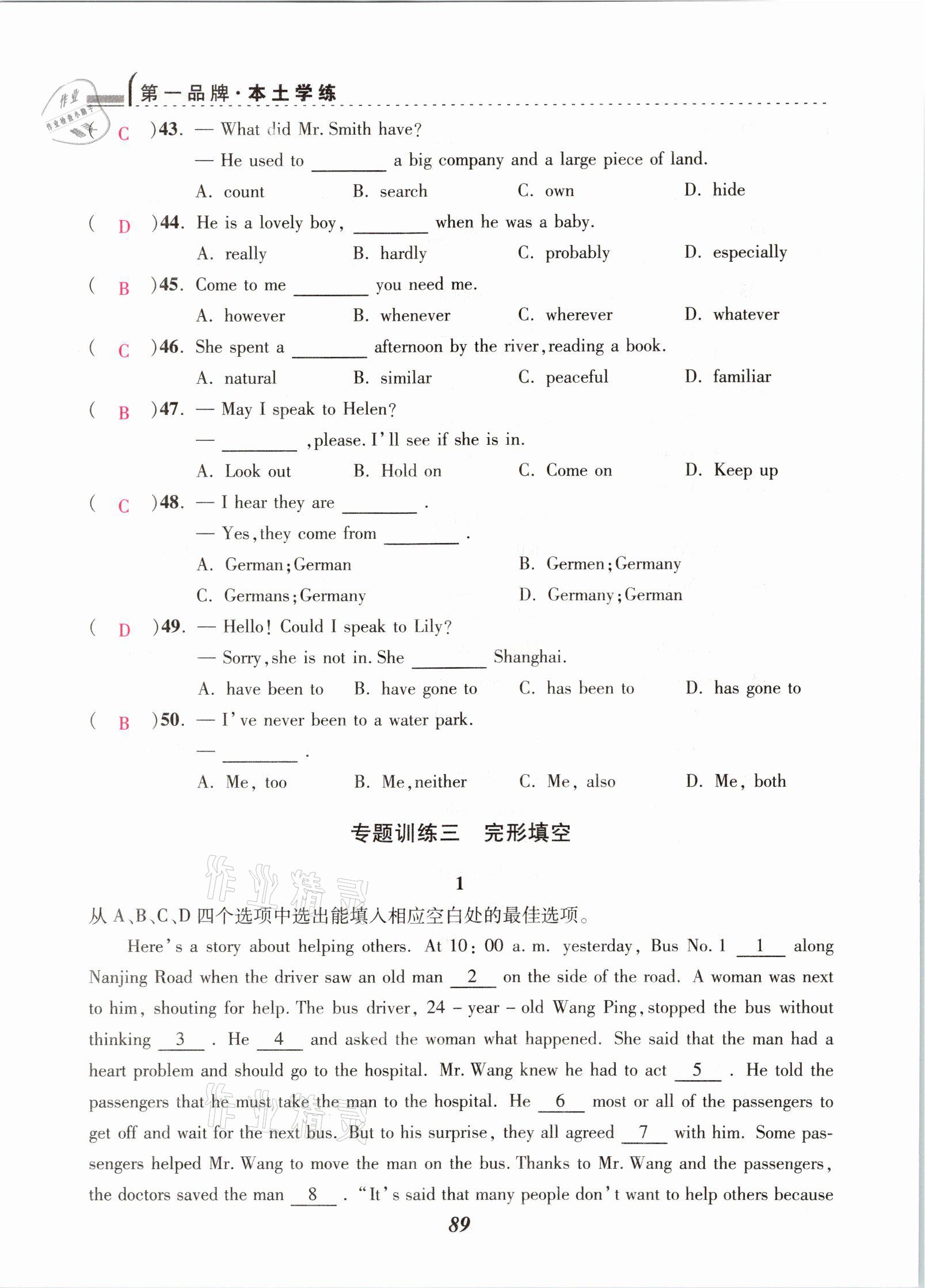 注:目前有些书本章节名称可能整理的还不是很完善,但都是按照顺序排列的,请同学们按照顺序仔细查找。练习册 2021年本土学练八年级英语下册人教版云南专版 答案主要是用来给同学们做完题方便对答案用的,请勿直接抄袭。