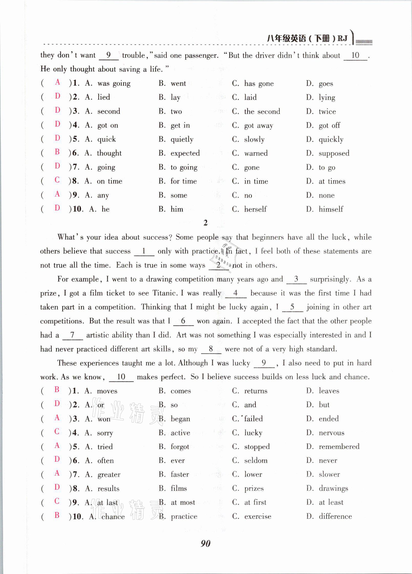 注:目前有些书本章节名称可能整理的还不是很完善,但都是按照顺序排列的,请同学们按照顺序仔细查找。练习册 2021年本土学练八年级英语下册人教版云南专版 答案主要是用来给同学们做完题方便对答案用的,请勿直接抄袭。