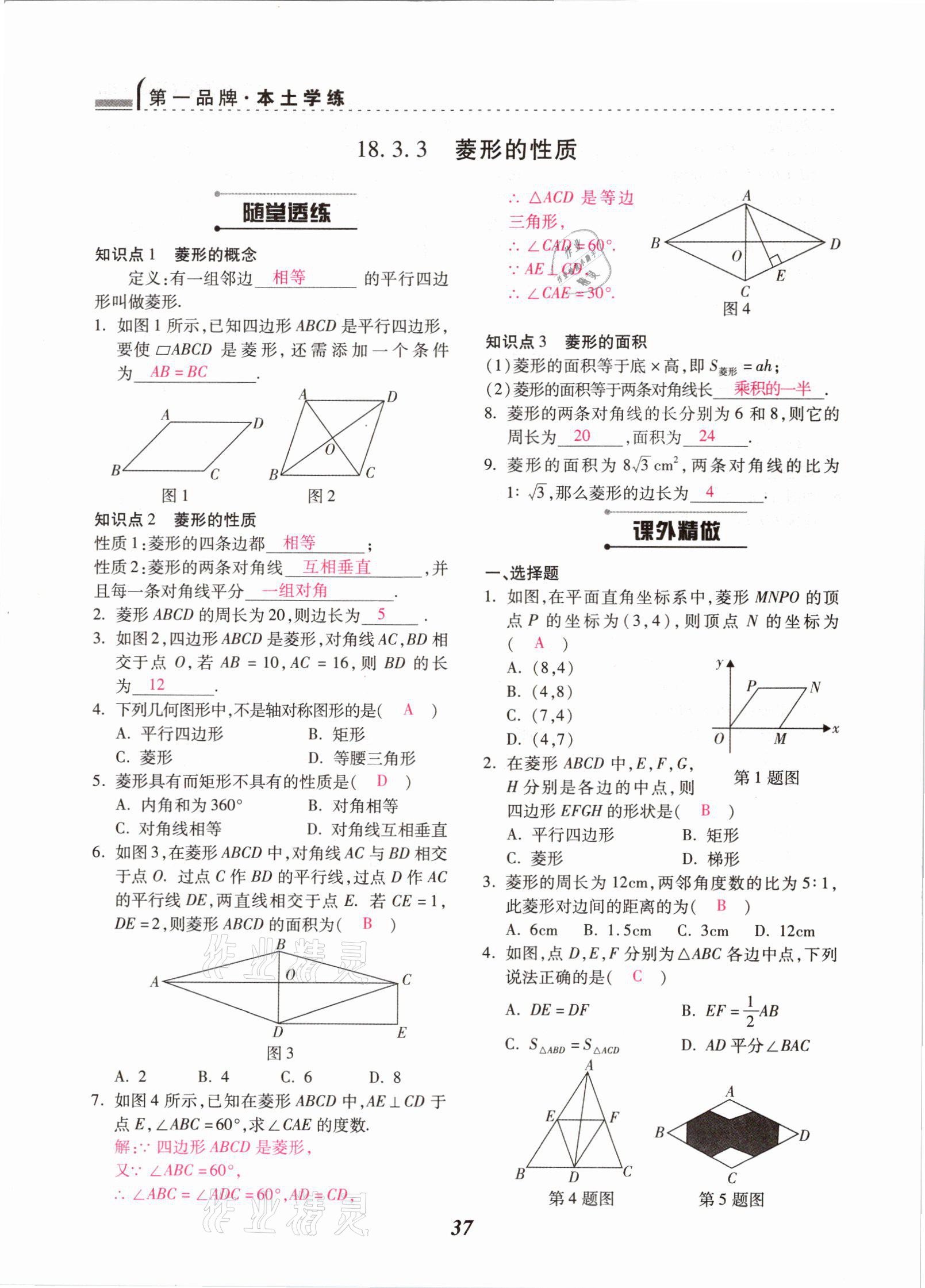 注:目前有些书本章节名称可能整理的还不是很完善,但都是按照顺序排列的,请同学们按照顺序仔细查找。练习册 2021年本土学练八年级数学下册人教版云南专版 答案主要是用来给同学们做完题方便对答案用的,请勿直接抄袭。