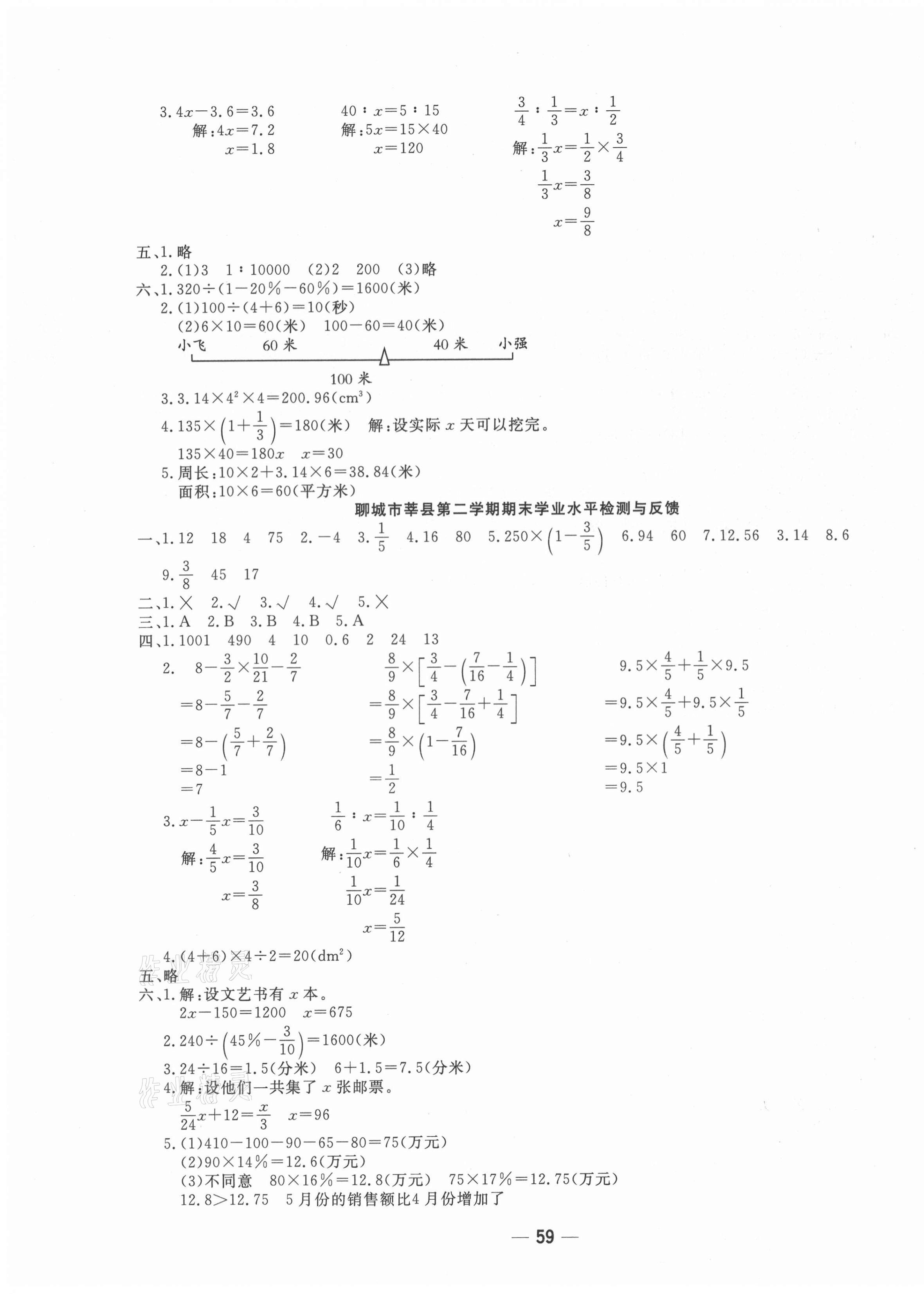 2021年学海金卷期末大赢家六年级数学下册青岛版聊城专版