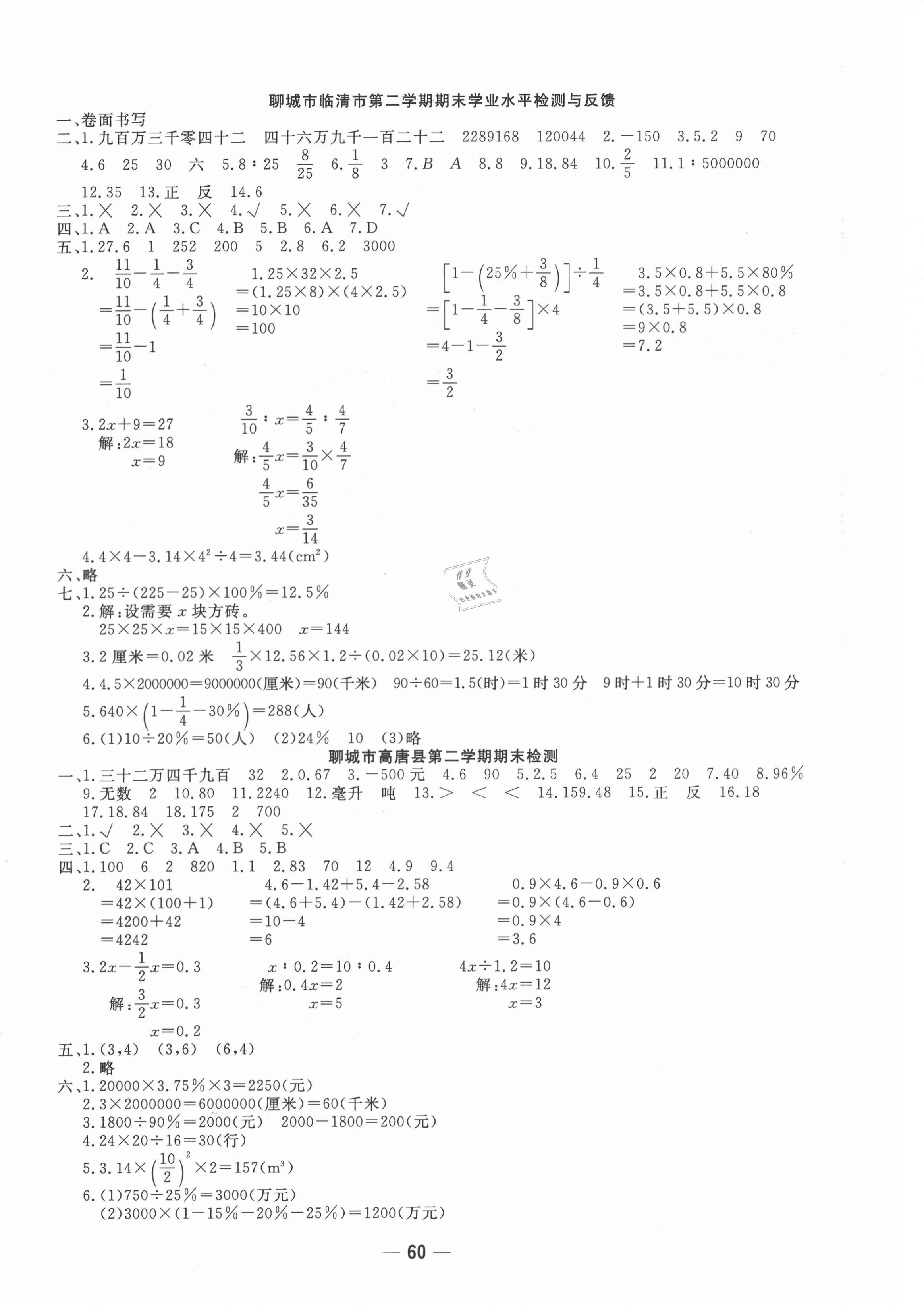 2021年学海金卷期末大赢家六年级数学下册青岛版聊城专版
