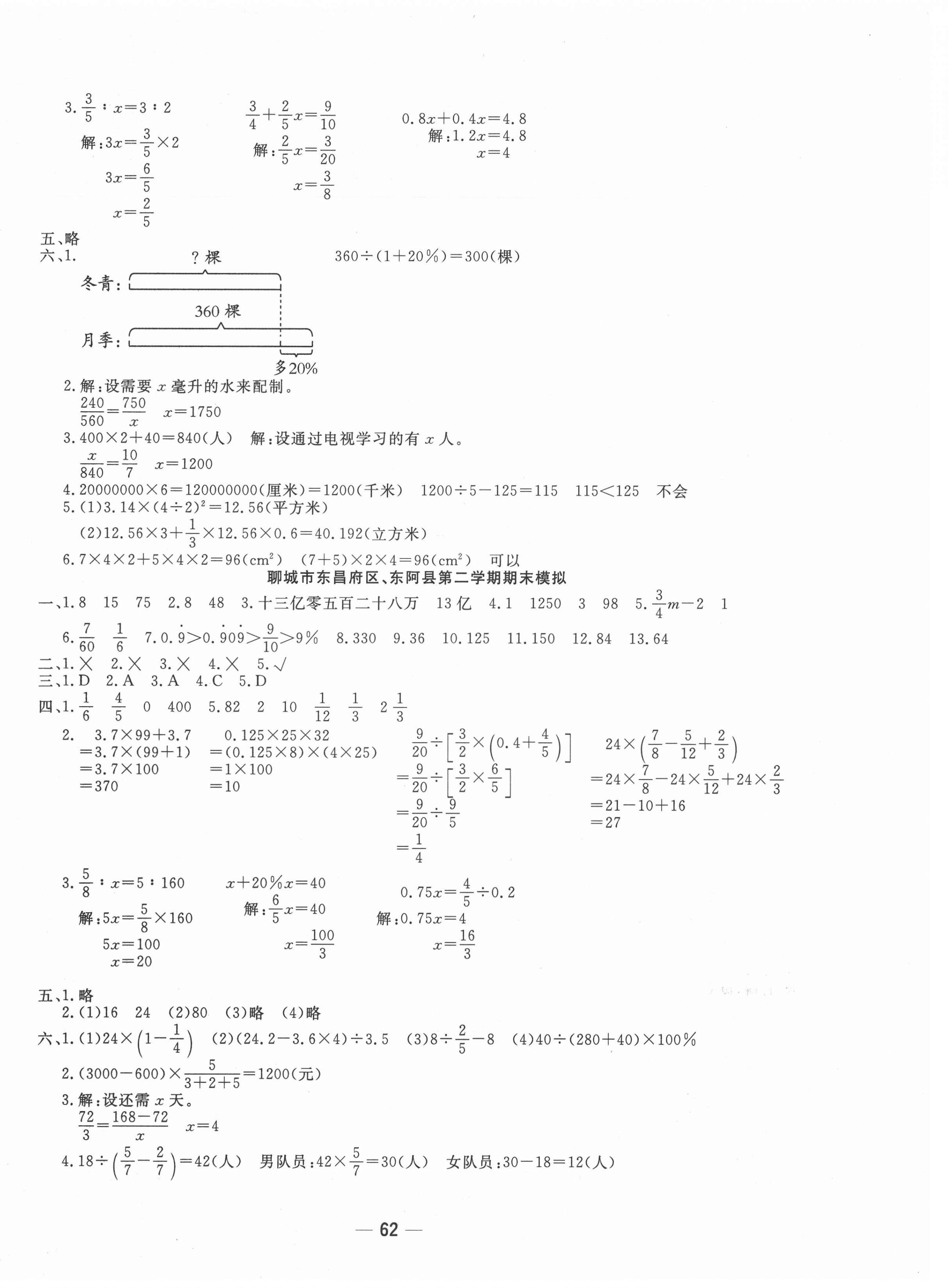 2021年学海金卷期末大赢家六年级数学下册青岛版聊城专版
